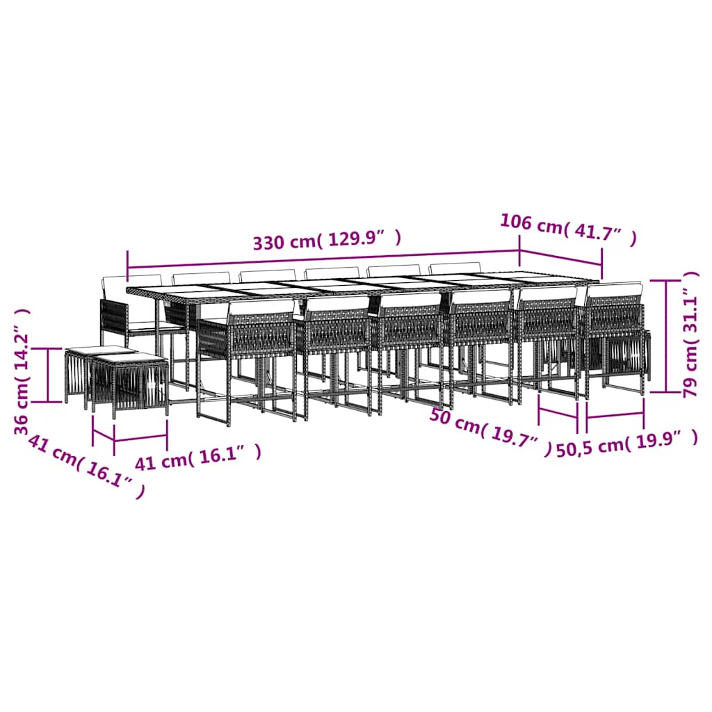 Set da Pranzo da Giardino 17pz con Cuscini Grigio in Polyrattan 3211547
