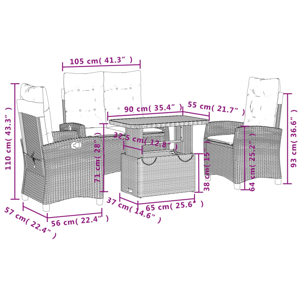Set da Pranzo da Giardino 4 pz con Cuscini Beige in Polyrattan 3277419