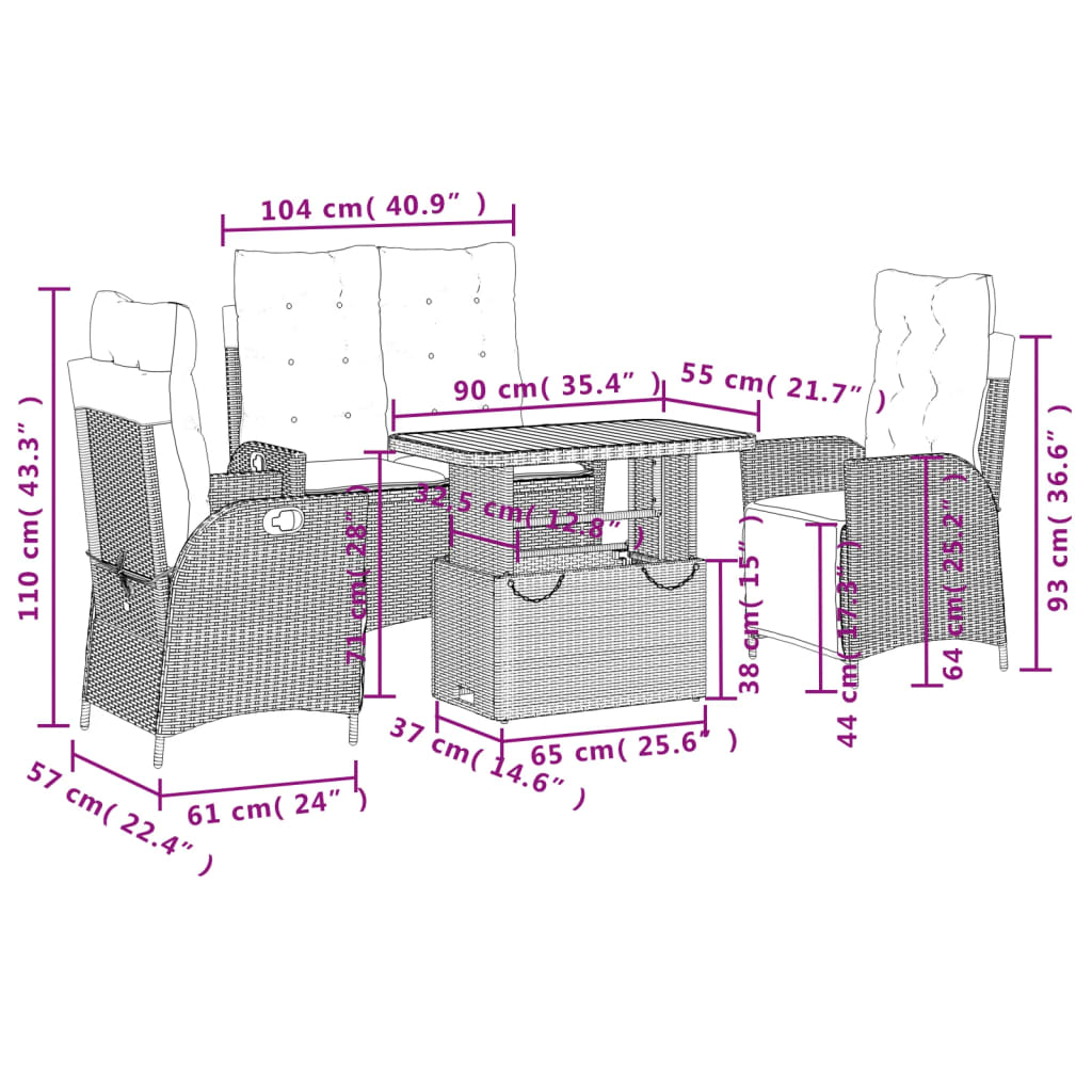- Materiale: PE rattan, verniciato a polvere acciaio