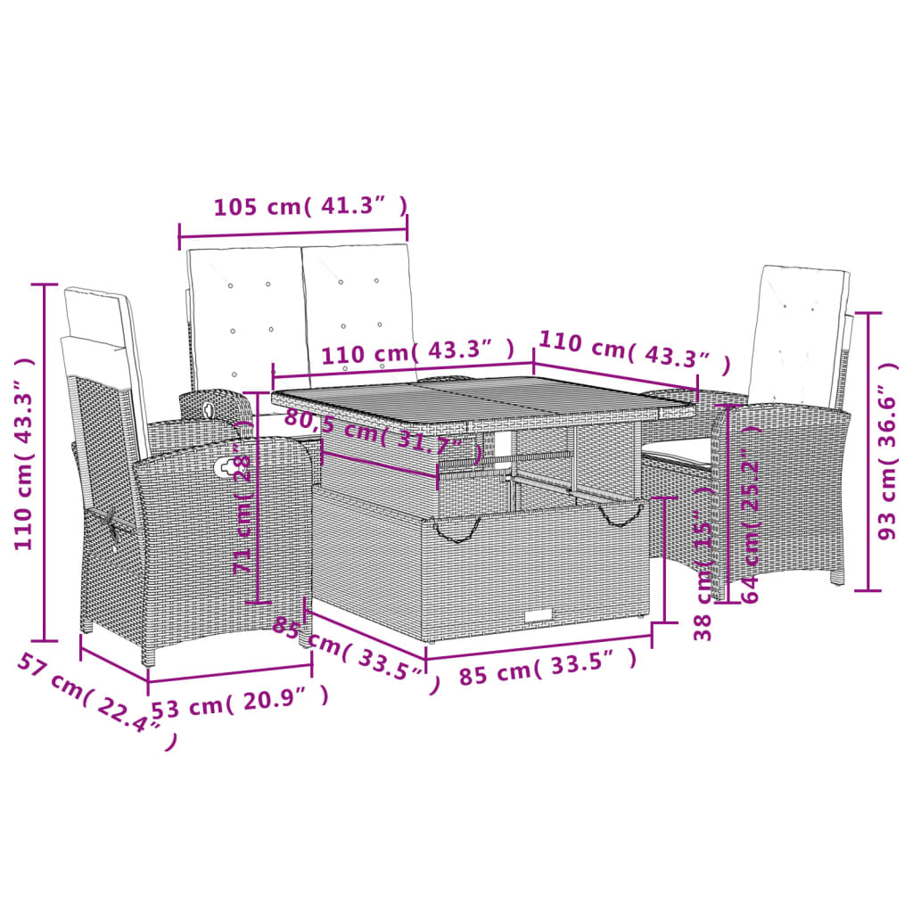 - Dimensioni del tavolino: 110 x 110 x 40/71 cm (L x L x A)