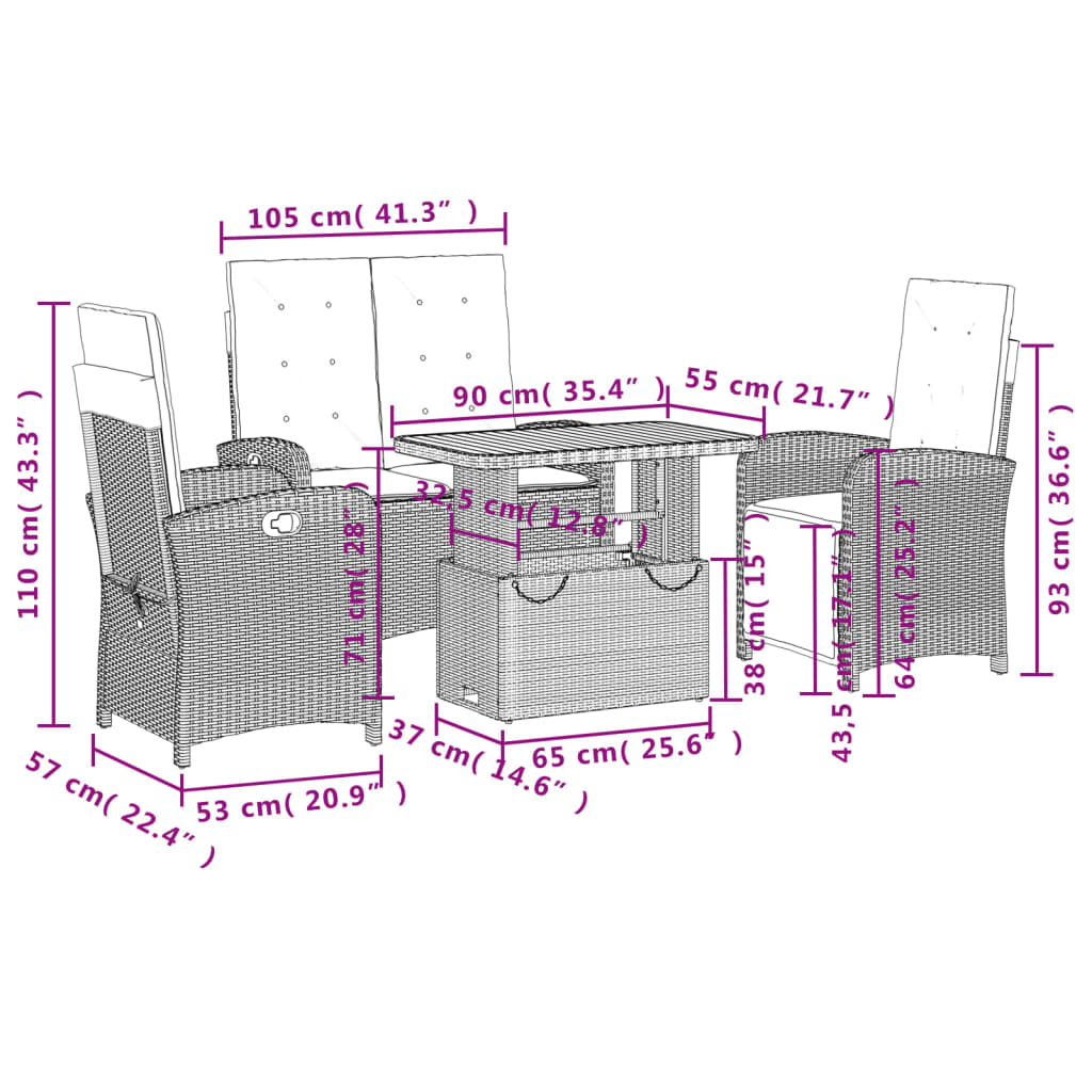 - Materiale: rattan PE, acciaio verniciato a polvere, legno massello di acacia con finitura a olio