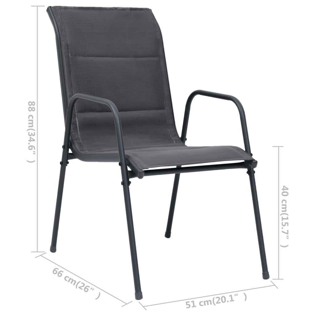 Questo set da pranzo presenta un telaio in acciaio verniciato a polvere, che lo rende stabile e durevole. Le comode sedie da esterni sono rivestite in robusto tessuto in textilene, il che le rende facili da pulire. Le poltrone possono anche essere impilate per risparmiare spazio quando non vengono utilizzate e sono imbottite per offrire ulteriore comfort. Il piano del tavolo si pulisce facilmente con un panno umido.