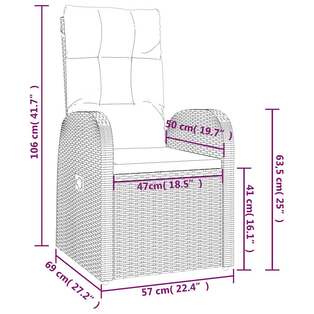 - Dimensioni quando reclinata: 57 x 106 x 85 cm (L x P x A)