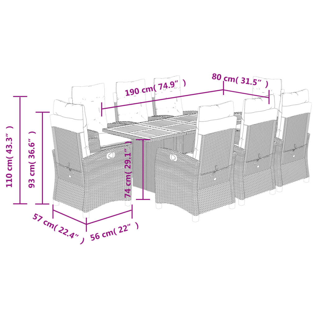 Set da Pranzo da Giardino 9 pz con Cuscini Nero in Polyrattan 3212709