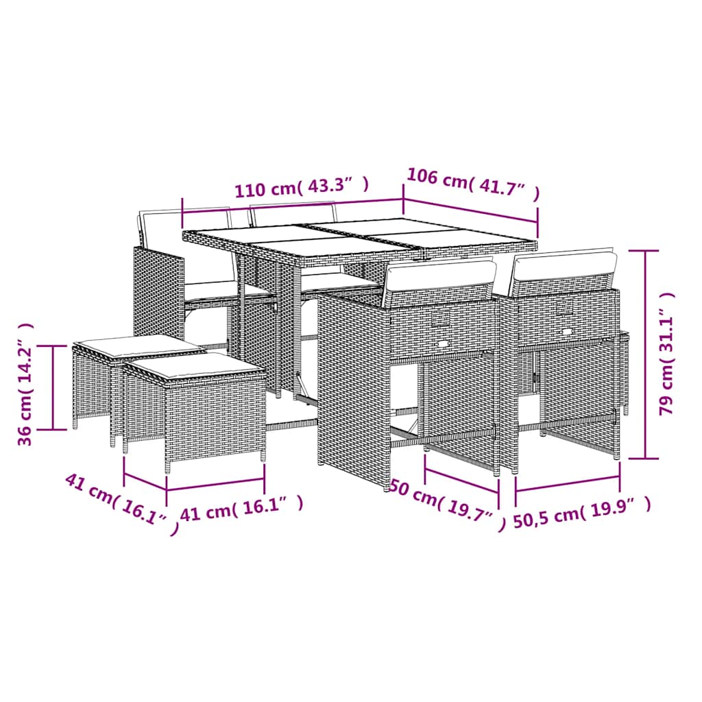 Set da Pranzo da Giardino 9pz con Cuscini Marrone in Polyrattan 3211137