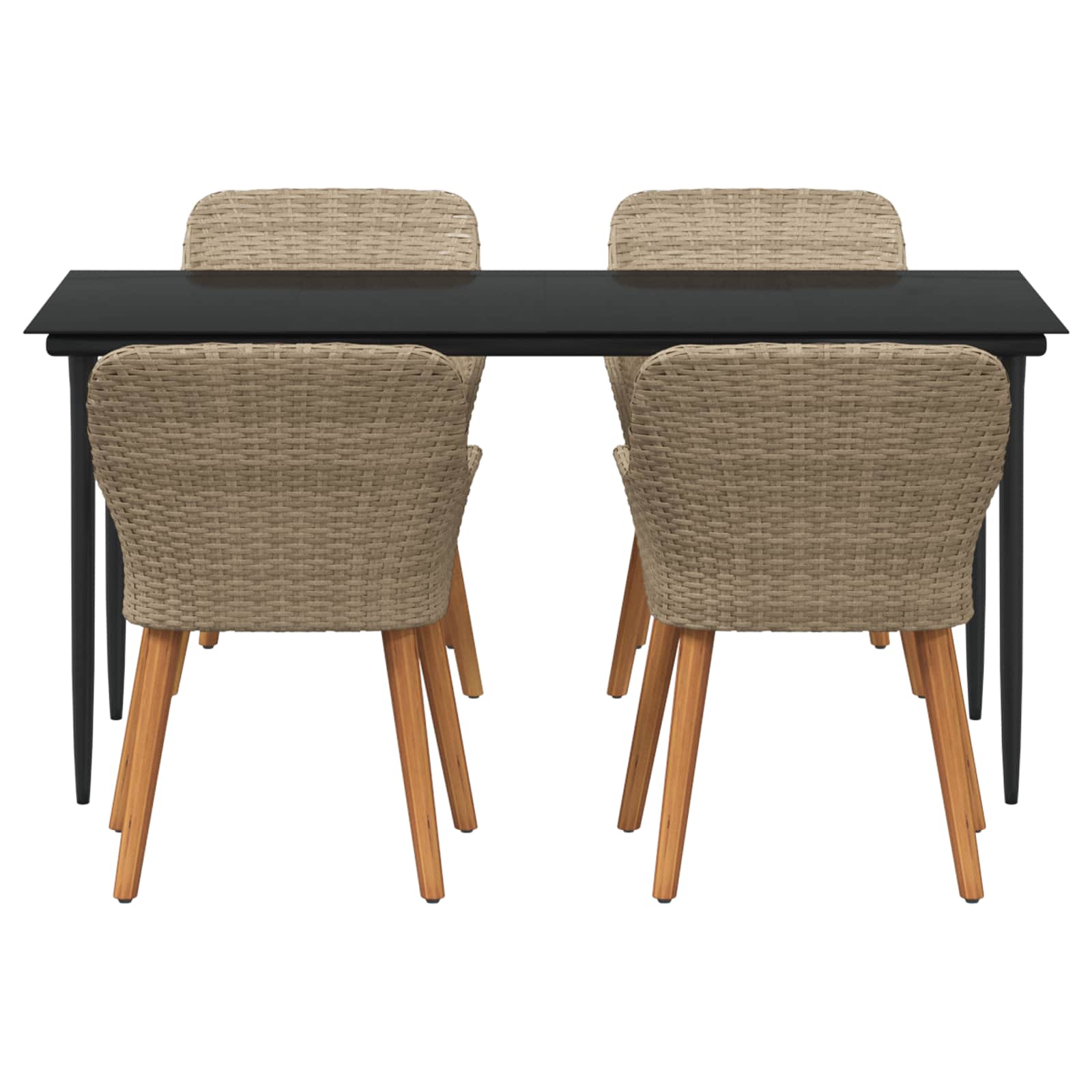 - Materiale in Poly Rattan: Il set è fatto di poly rattan, noto per la sua resistenza e bassa manutenzione. È pensato per resistere al tempo, così il tuo set resta bello anche con l'uso all'aperto. La texture del rattan aggiunge eleganza al tuo giardino.