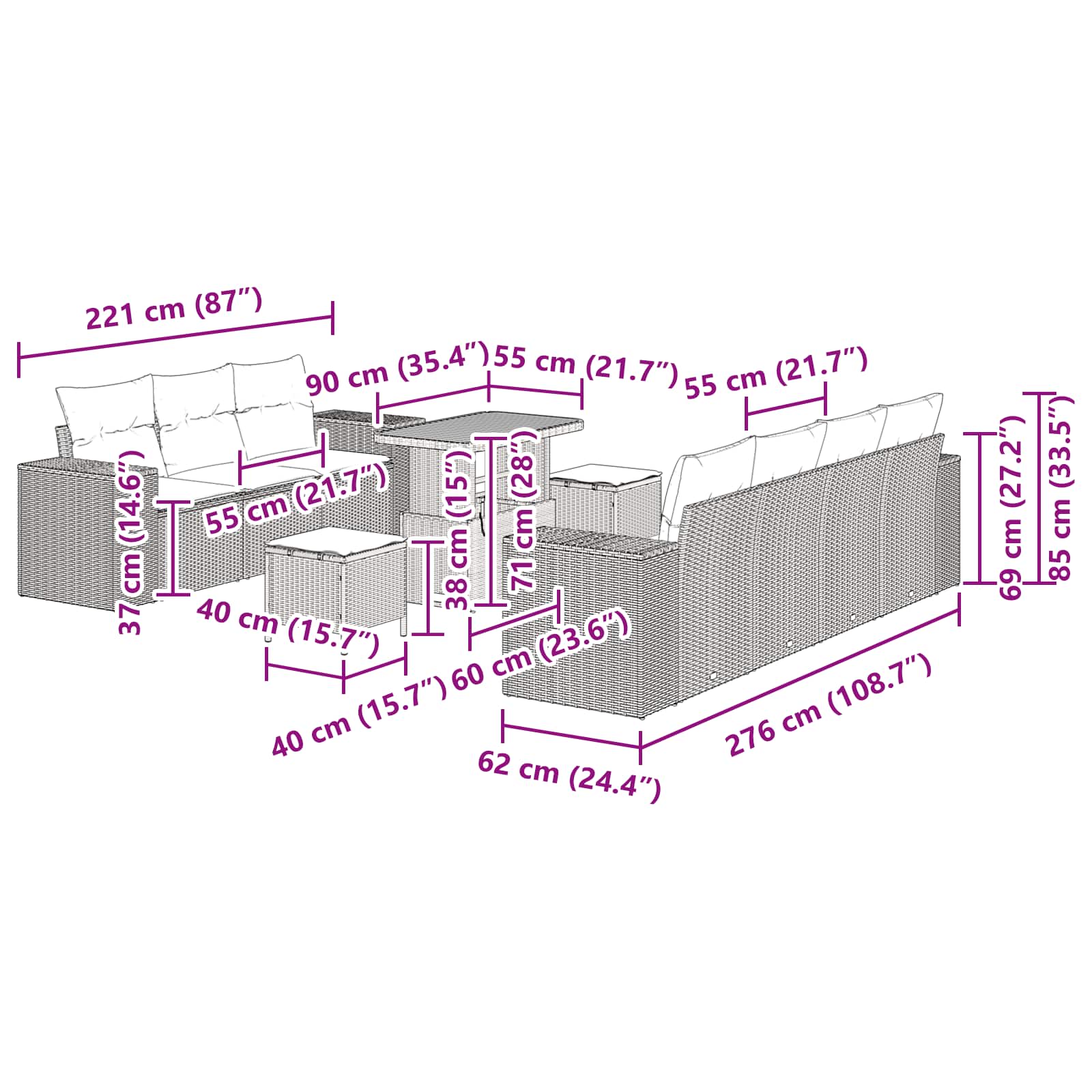 - Manutenzione pratica: Usa coperture protettive quando non lo usi e riponi i cuscini in casa durante il brutto tempo. Questa manutenzione semplice mantiene il set in ottime condizioni per tanti anni.