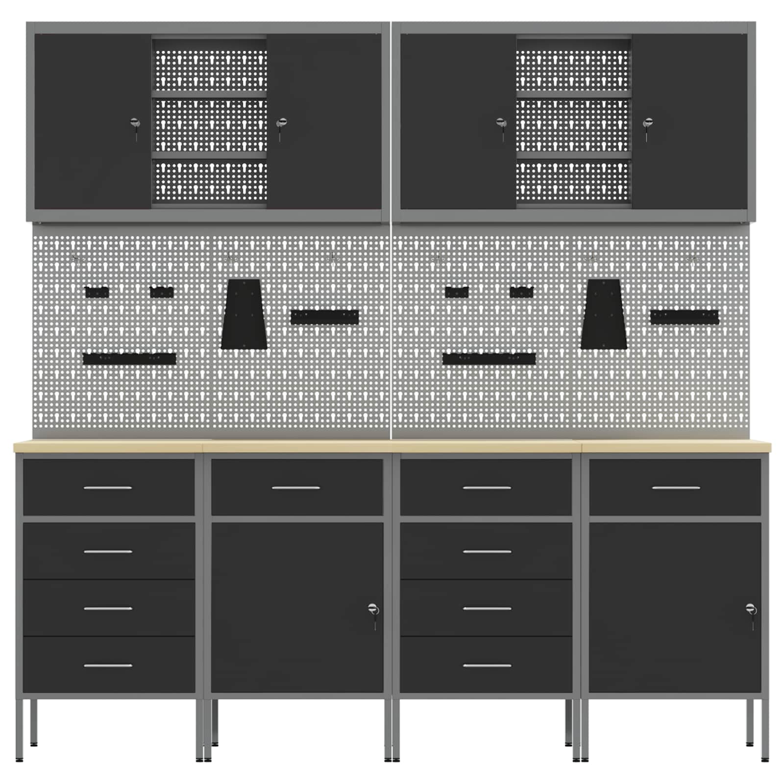 - Telaio in acciaio: Fatto in legno ingegnerizzato e acciaio, questo armadietto è robusto e duraturo, perfetto per il tuo spazio di lavoro. La struttura forte rende sicuro riporre attrezzi pesanti senza preoccupazioni. Anche se è resistente, ha un aspetto elegante, migliorando l'estetica della tua officina. Mantenere pulito basta usarci un panno umido.