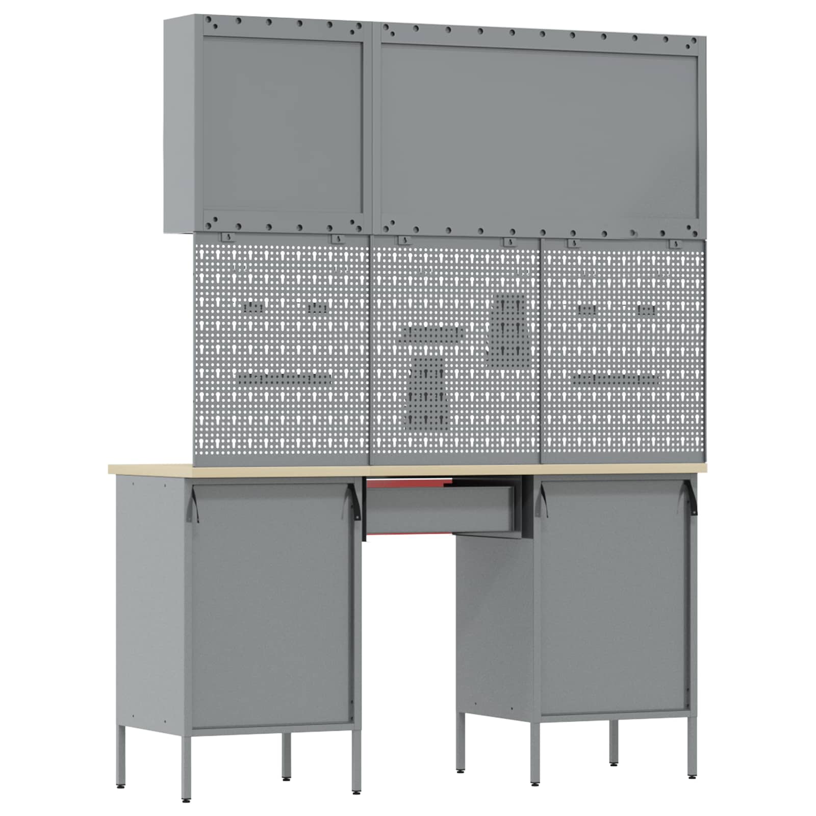- Telaio in acciaio: Fatto in legno ingegnerizzato e acciaio, questo armadietto è robusto e duraturo, perfetto per il tuo spazio di lavoro. La struttura forte rende sicuro riporre attrezzi pesanti senza preoccupazioni. Anche se è resistente, ha un aspetto elegante, migliorando l'estetica della tua officina. Mantenere pulito basta usarci un panno umido.