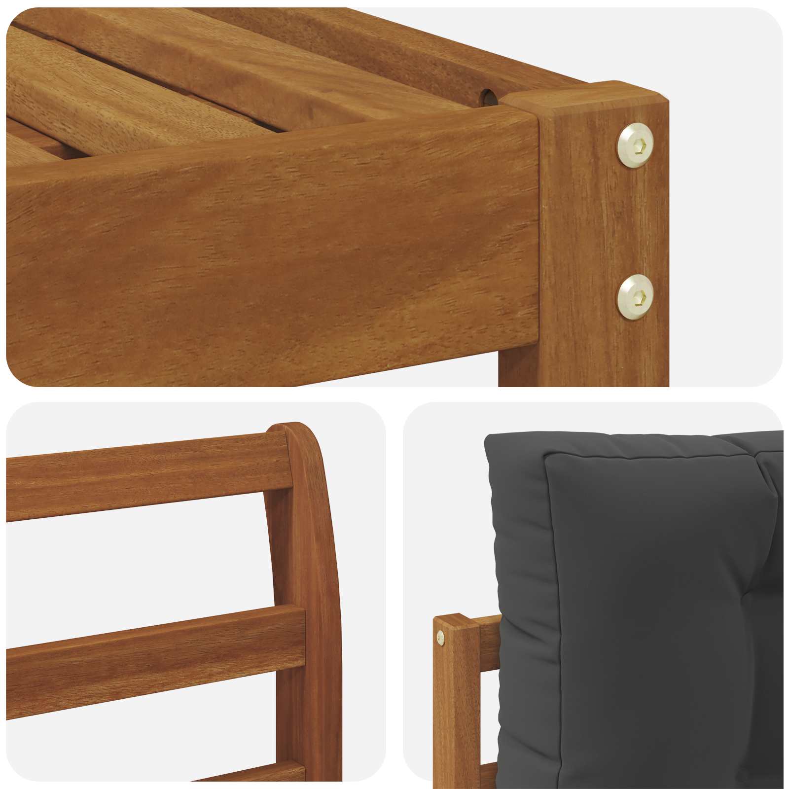 - Legno Massello di Acacia: Questo robusto set di divani è realizzato in legno massello di acacia, resistente agli agenti atmosferici e perfetto per l'outdoor. La bellezza del legno combina resistenza e stile, assicurando durabilità in giardini, patii o accanto alla piscina.