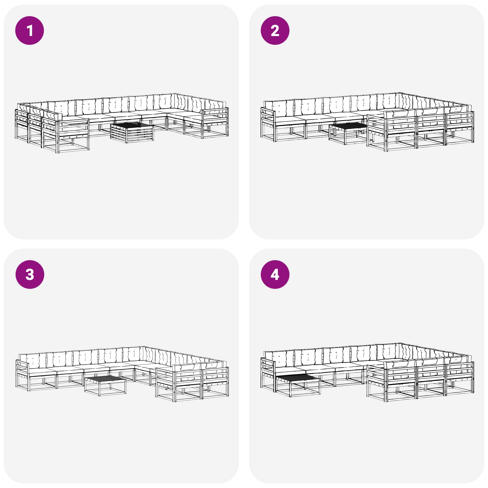 - Stile Moderno: Con linee pulite e un design minimalista, questo set di divani è un'ottima aggiunta a qualsiasi giardino o patio, integrandosi perfettamente con vari stili di decorazione.