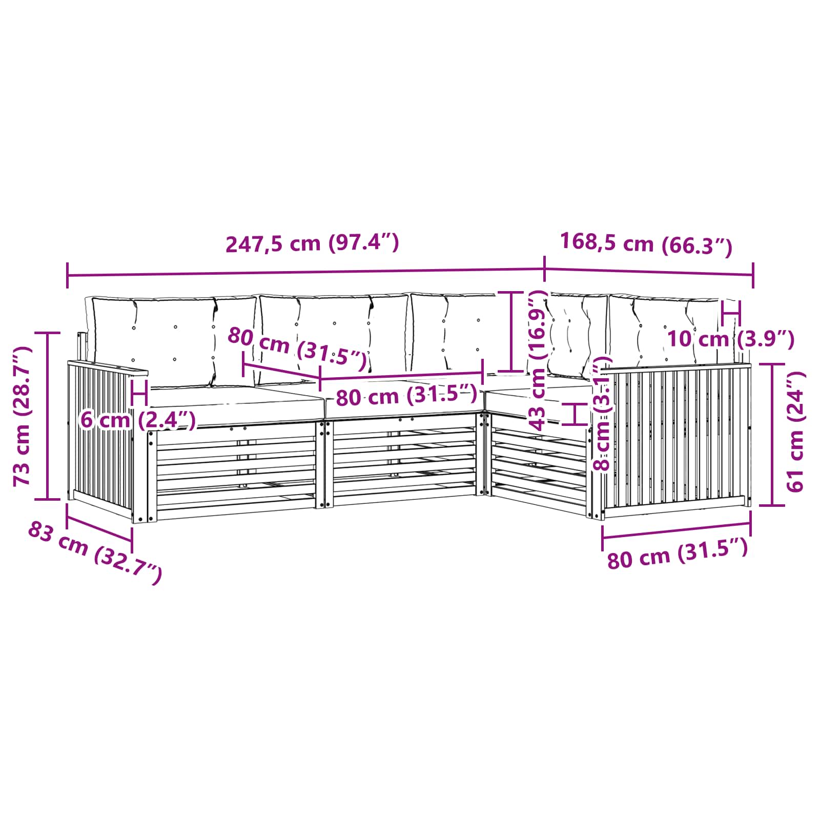 Il set di mobili da esterno unisce stile e funzionalità, creando un centro d'attrazione per il giardino o la terrazza. Il design moderno, con linee pulite e dettagli semplici, aggiunge eleganza mentre sostiene il relax all'aperto e i ritrovi sociali. Realizzato in legno massello di acacia, il set è resistente e visivamente bello, facendo di lui la scelta ideale per chi cerca praticità e design nei mobili da esterno.
