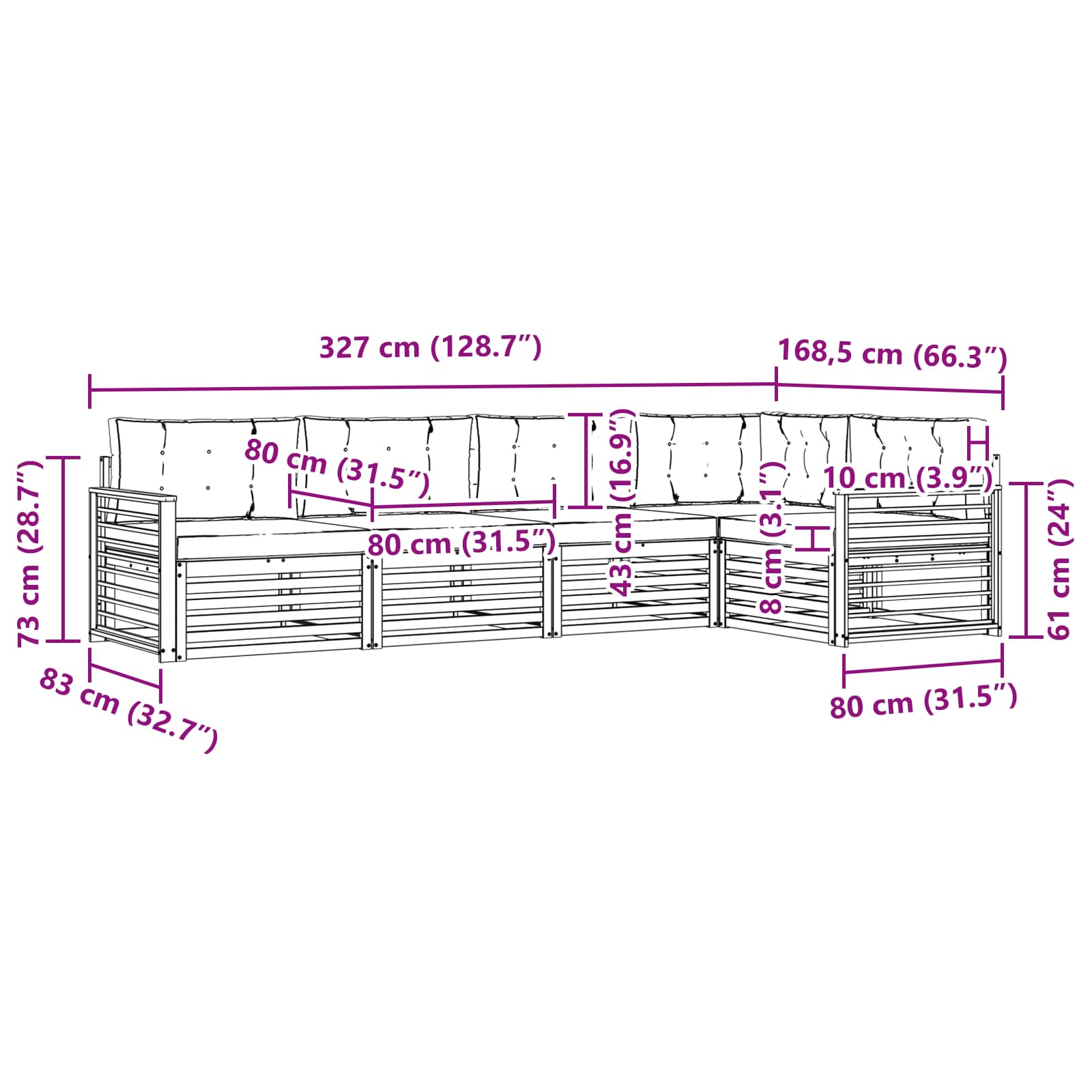 - 5 x Cuscino per Seduta: 80 x 80 x 8 cm (LxWxH)