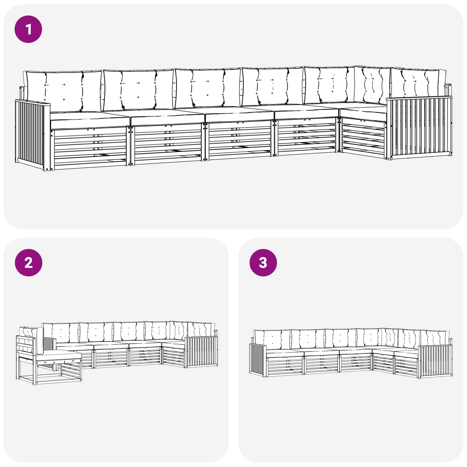 Il set di mobili da esterno unisce stile e praticità, diventando il fulcro perfetto per giardini e terrazze. Con un design moderno e linee pulite, aggiunge un tocco di eleganza mentre favorisce il relax all'aperto e i momenti sociali. Realizzato in legno massello di acacia, garantisce durabilità e un'estetica sempre attuale, rendendolo ideale per chi cerca funzionalità e bellezza nei mobili da esterno.