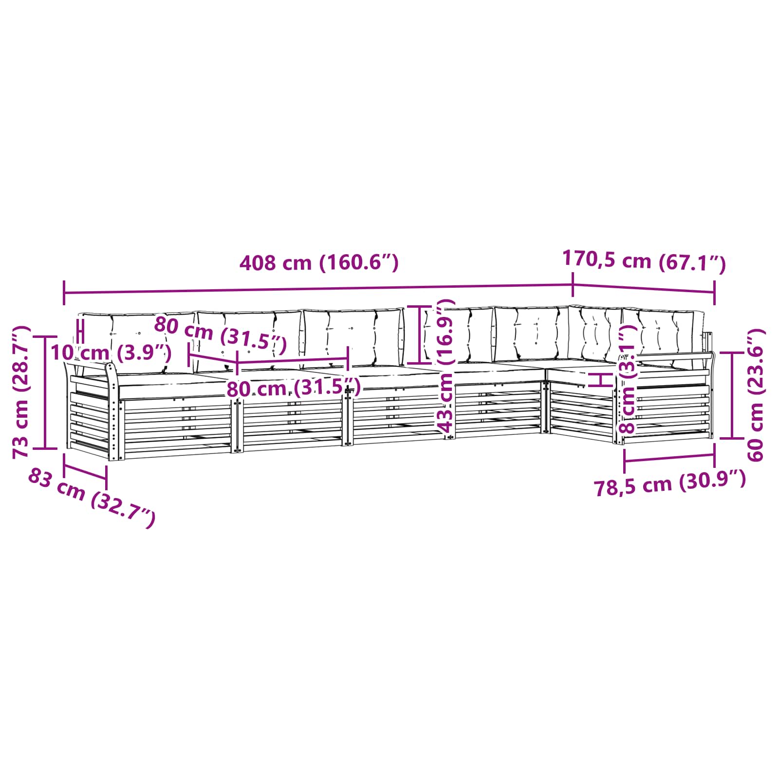 - 6 x Cuscino Seduta: 80 x 80 x 8 cm (LxPxA)