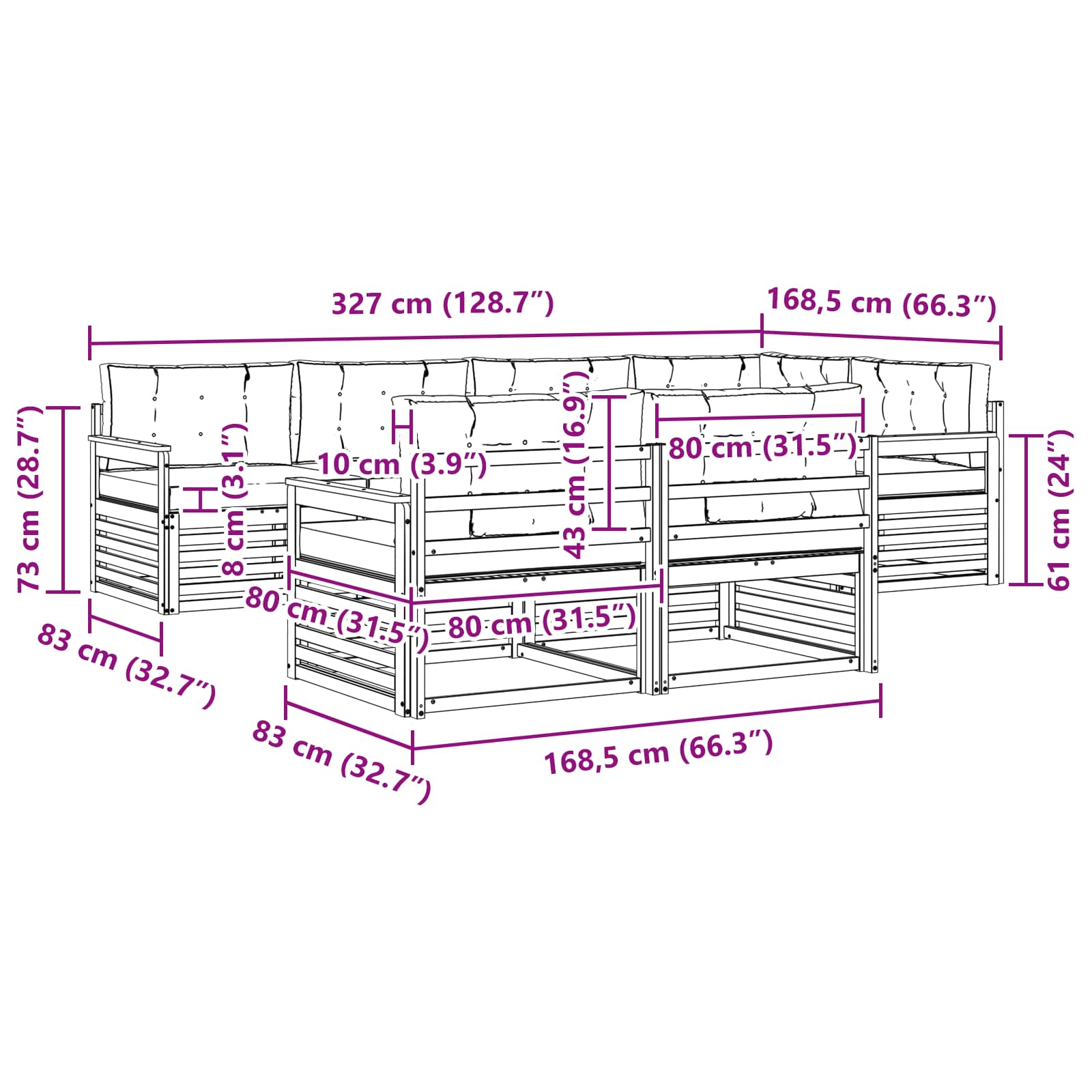 - 7 x Cuscino Seduta: 80 x 80 x 8 cm (LxPxA)