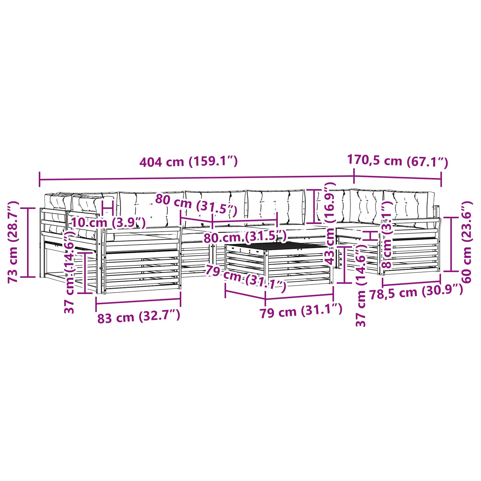 - 7 x Cuscino Seduta: 80 x 80 x 8 cm (LxPxA)