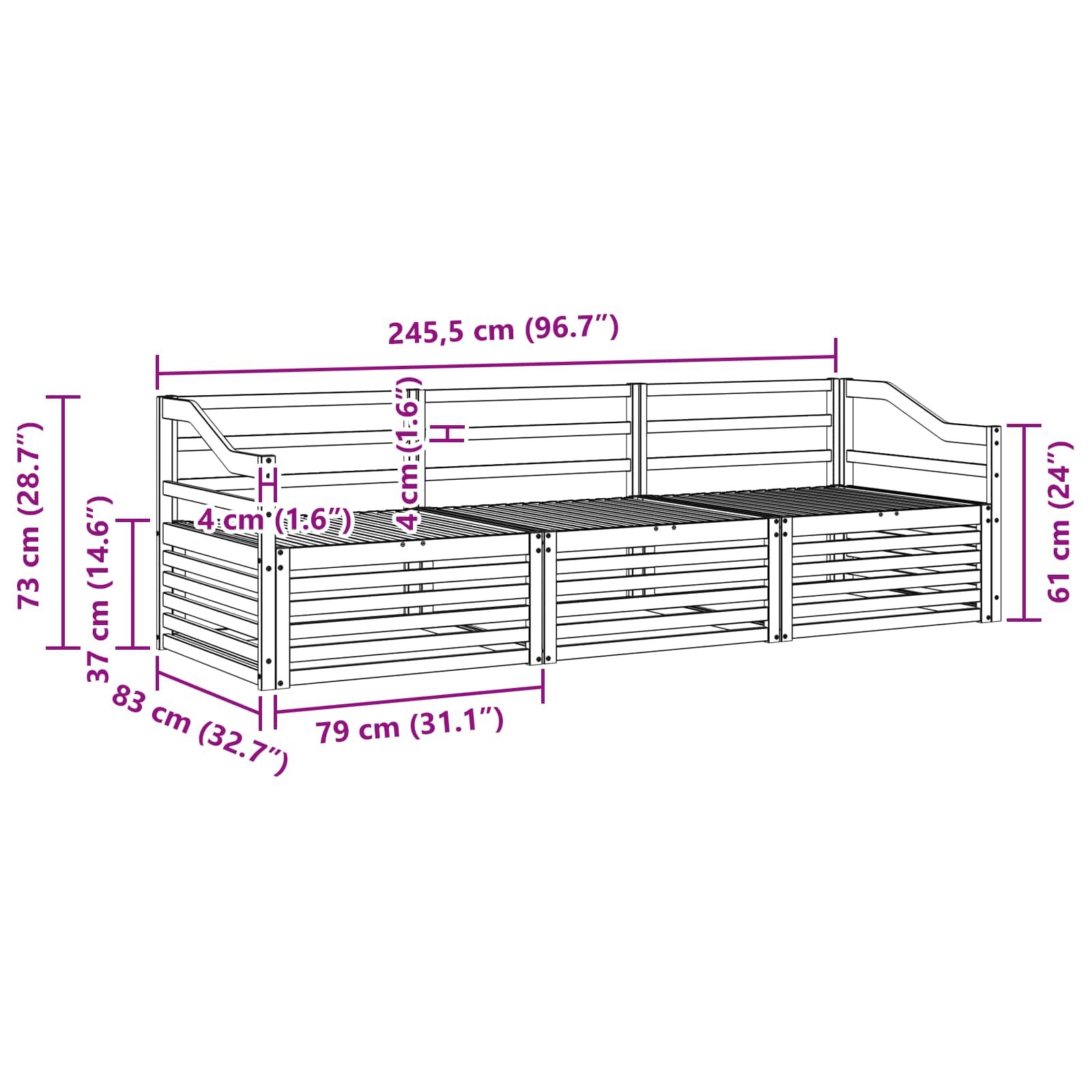 - Dimensioni complessive: 245,5 x 83 x 73 cm (L x P x A)