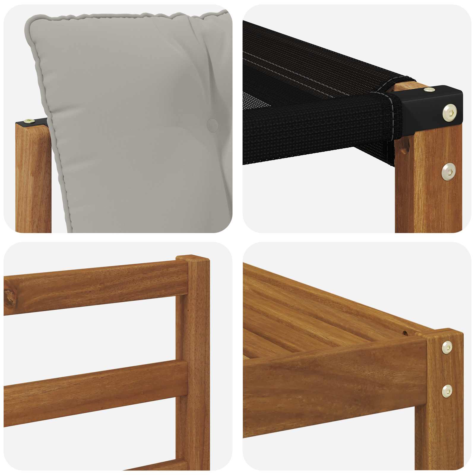 - Legno massello di acacia: Fatto in legno massello di acacia, il set ha una texture naturale ed è super resistente nel tempo. Il suo colorito ricco aggiunge un tocco di eleganza senza tempo, perfetto per affrontare le intemperie.