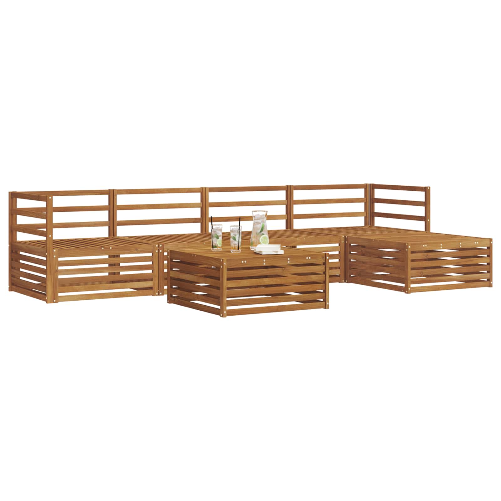Il set di mobili da esterno unisce stile e funzionalità, diventando un pezzo centrale sorprendente in qualsiasi giardino o terrazza. Il design moderno, con linee pulite e dettagli minimi, dona eleganza e incoraggia il relax all'aperto e i ritrovi sociali. Interamente realizzato in legno massello di acacia, questo set è fatto per durare ed è visivamente attraente, ideale per chi cerca praticità e design raffinato nei mobili da esterno.