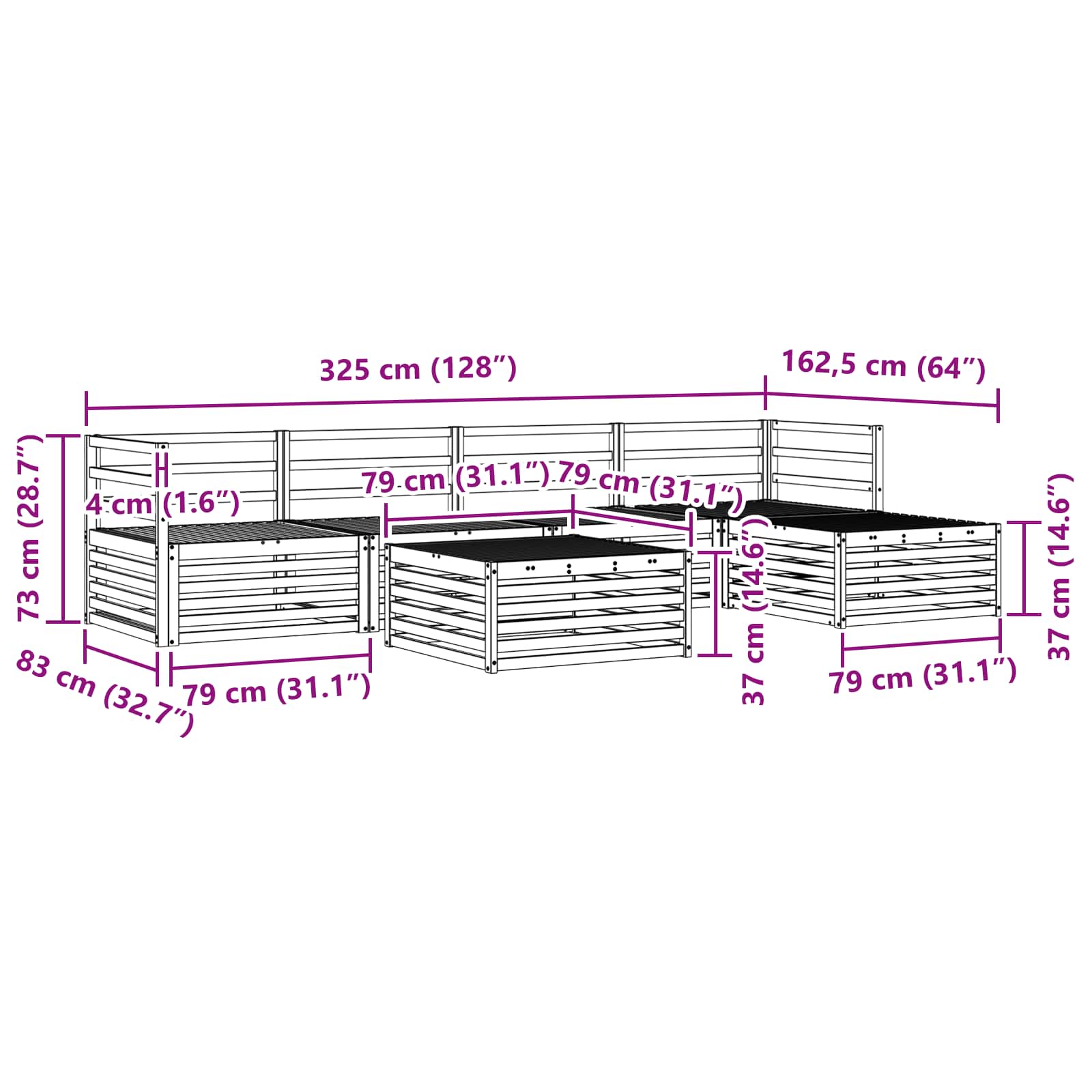 - 4 x Divano Medio: 79 x 83 x 73 cm (LxPxA)
