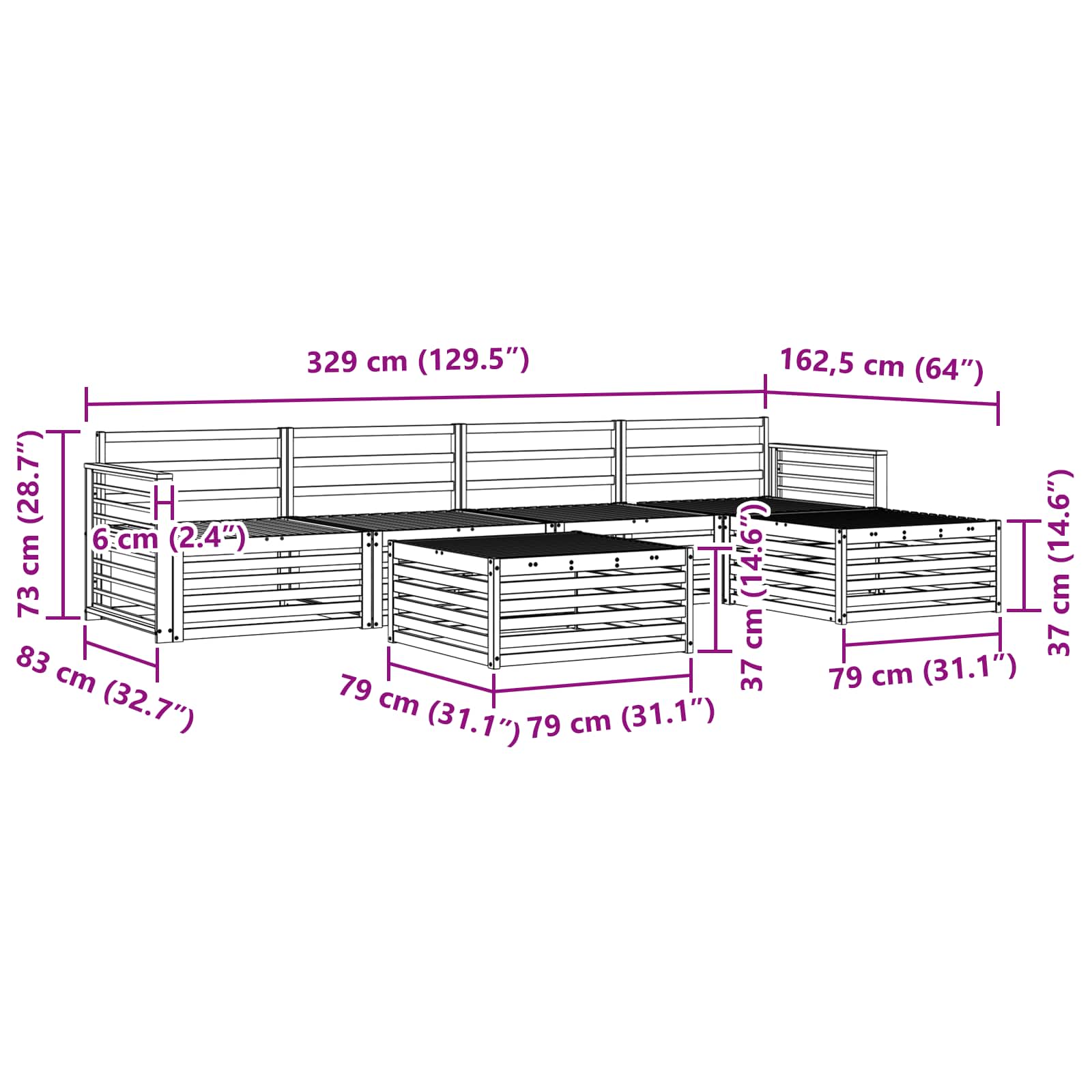 - 4 x Divano Medio: 79 x 83 x 73 cm (LxPxA)