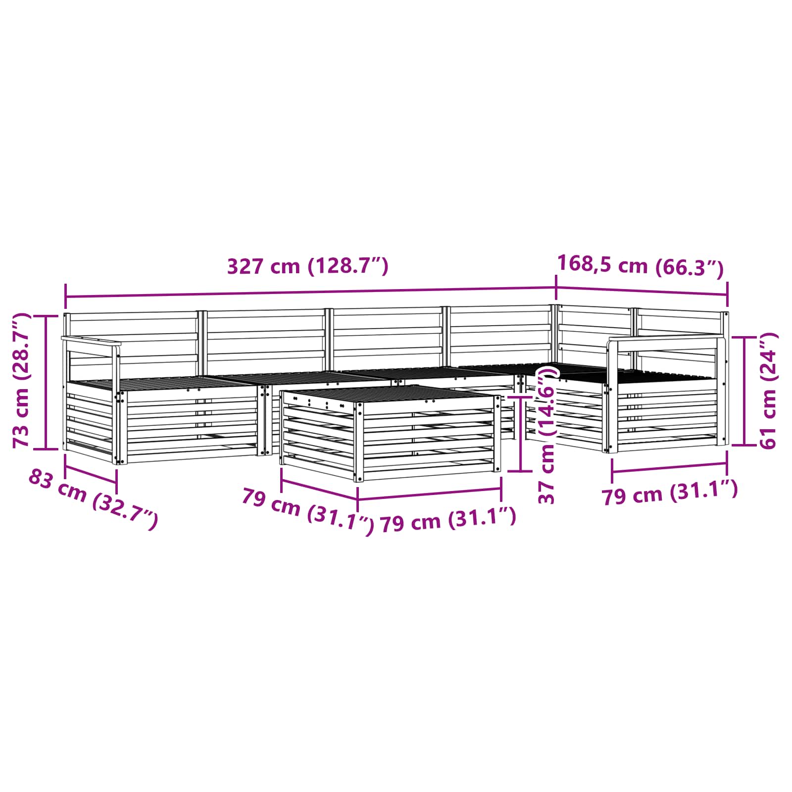 - Dimensioni complessive: 79 x 79 x 37 cm (L x P x A)