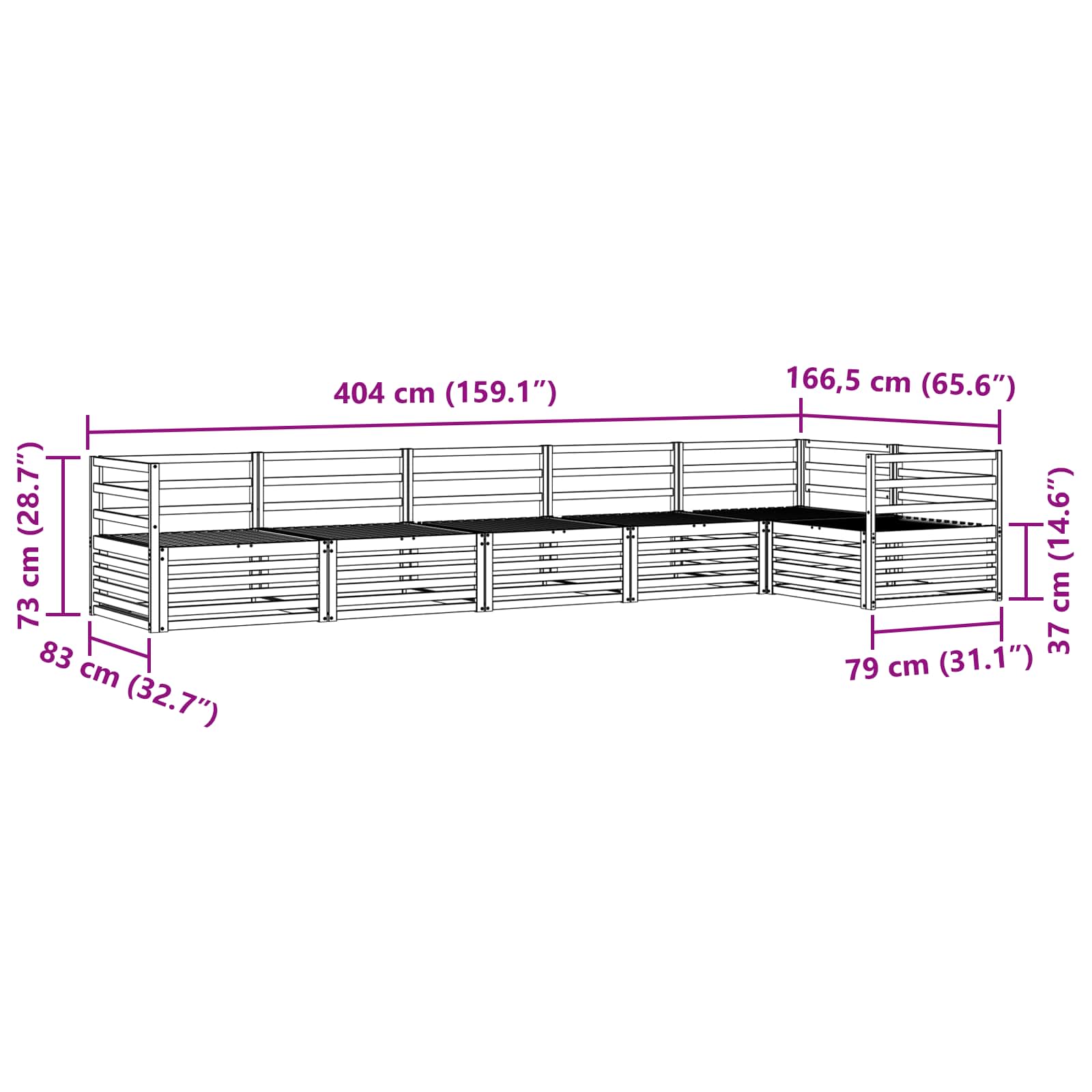 - Dimensioni complessive: 404 x 166,5 x 73 cm (L x P x A)