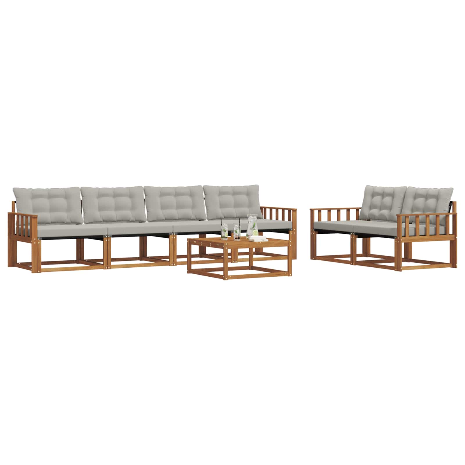 Il set di mobili da esterno unisce stile e funzionalità, diventando il pezzo principale per qualsiasi giardino o terrazza. Il design moderno, con linee pulite e minimalismo, offre eleganza mentre favorisce il relax e i momenti sociali all'aperto. Costruito in legno massello di acacia, assicura durata e un aspetto che dura nel tempo, rendendolo ideale per chi cerca sia praticità che bellezza nei mobili da esterno.