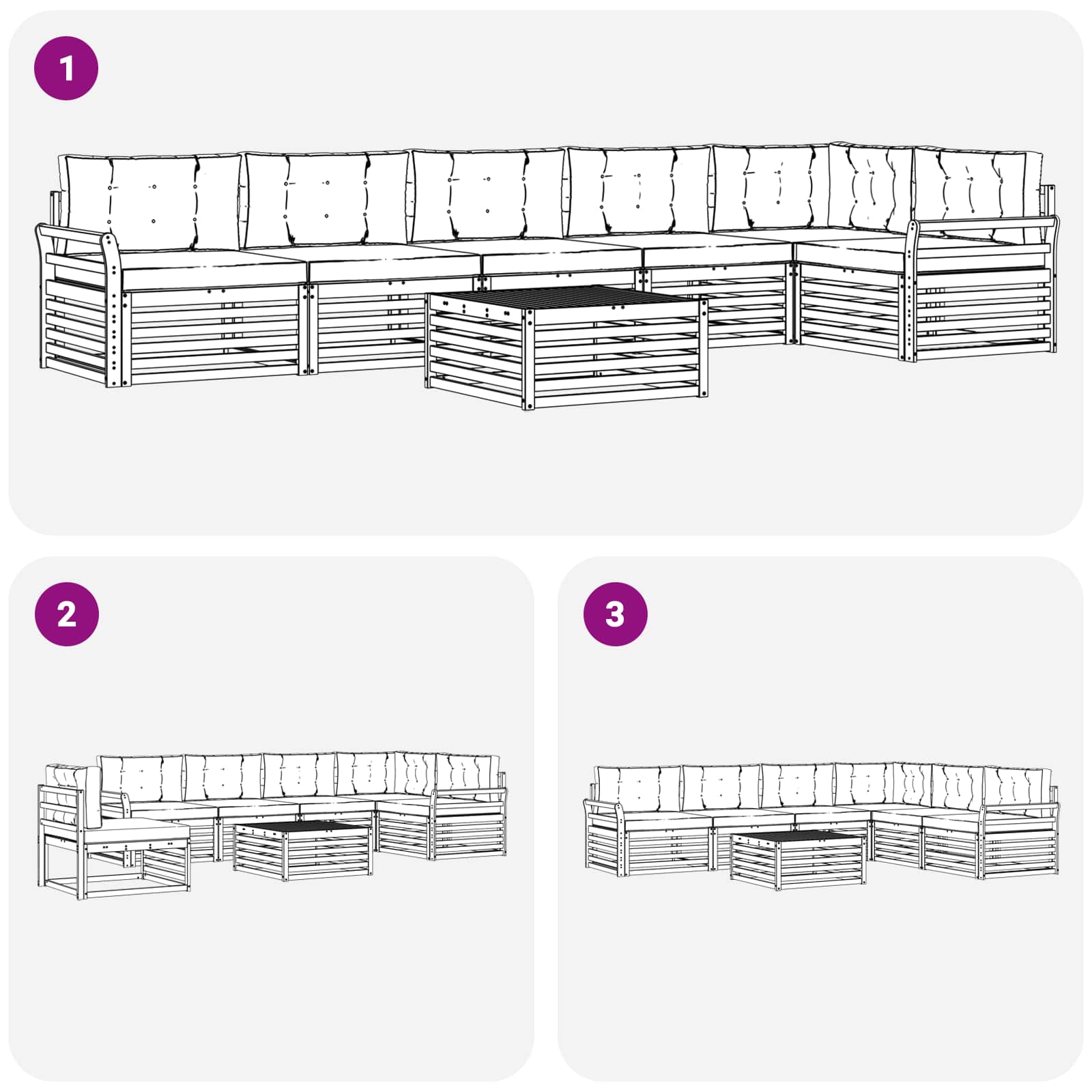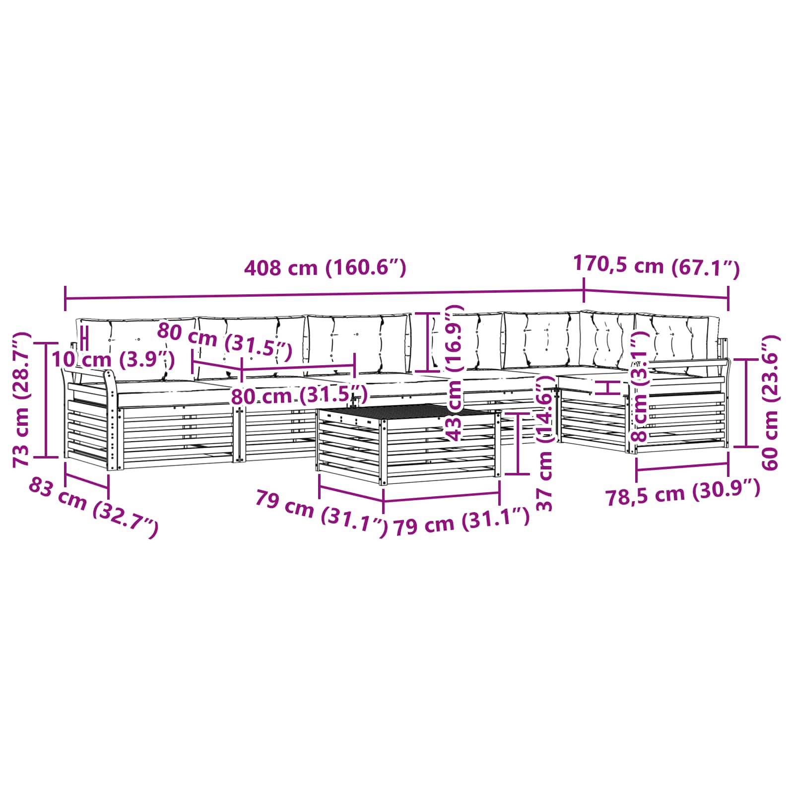 Il set di mobili da esterno combina stile e funzionalità, creando un punto focale sorprendente per ogni giardino o terrazza. Il design moderno, con linee pulite e dettagli semplici, aggiunge eleganza mentre supporta il relax e la socializzazione all'aperto. Realizzato in legno massello di acacia, il set è durevole e visivamente attraente, rendendolo la scelta ideale per chi cerca praticità e design nei mobili da esterno.