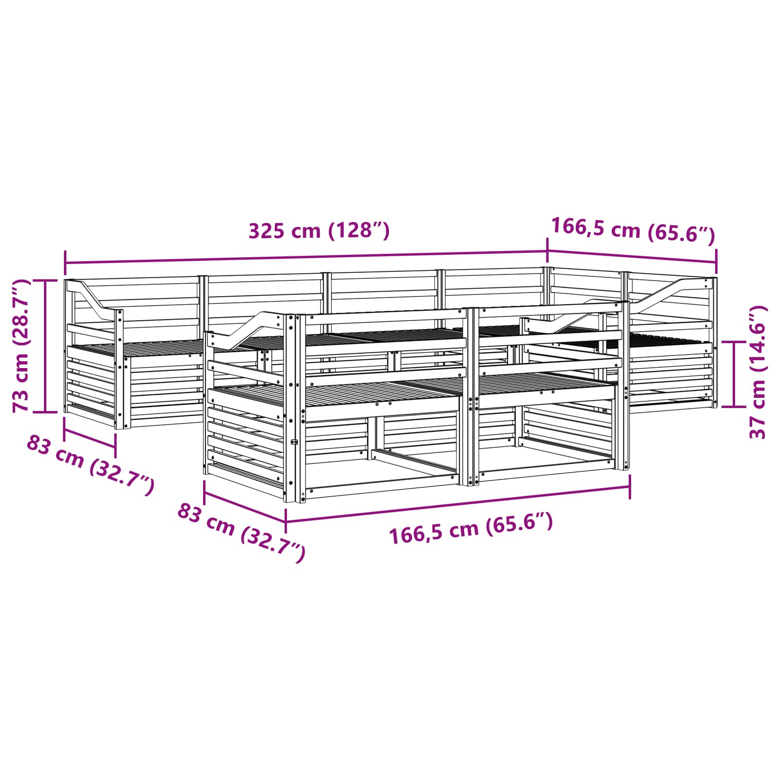 - Dimensioni complessive: 325 x 166,5 x 73 cm (L x P x A)
