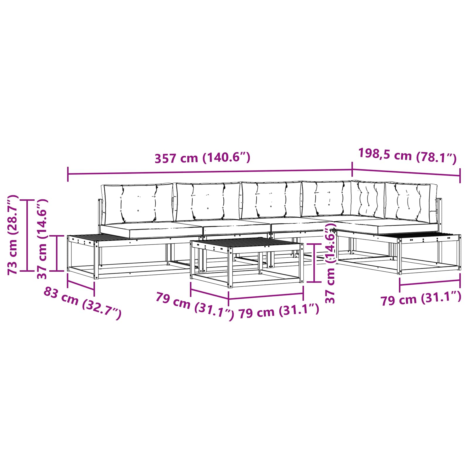 - 6 x Cuscino da Seduta: 60 x 60 x 8 cm (L x P x A)