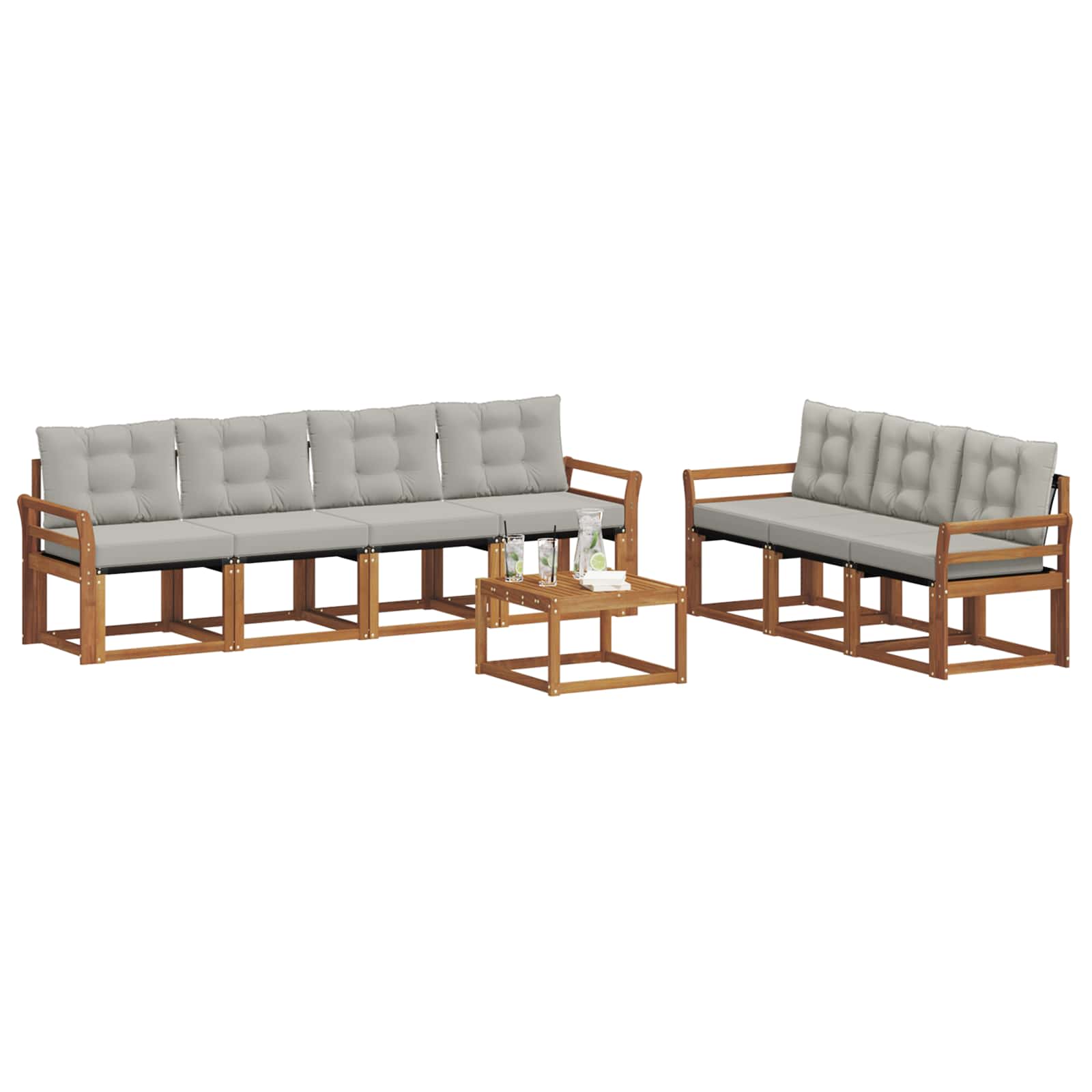 Questo set di mobili da esterno unisce stile e funzionalità, diventando un punto focale per qualsiasi giardino o terrazza. Il design moderno, pulito e minimalista, aggiunge eleganza e favorisce il relax all'aperto. Realizzato in legno massello di acacia, assicura durata e un look sempre fresco, ideale per chi cerca praticità senza rinunciare al design.