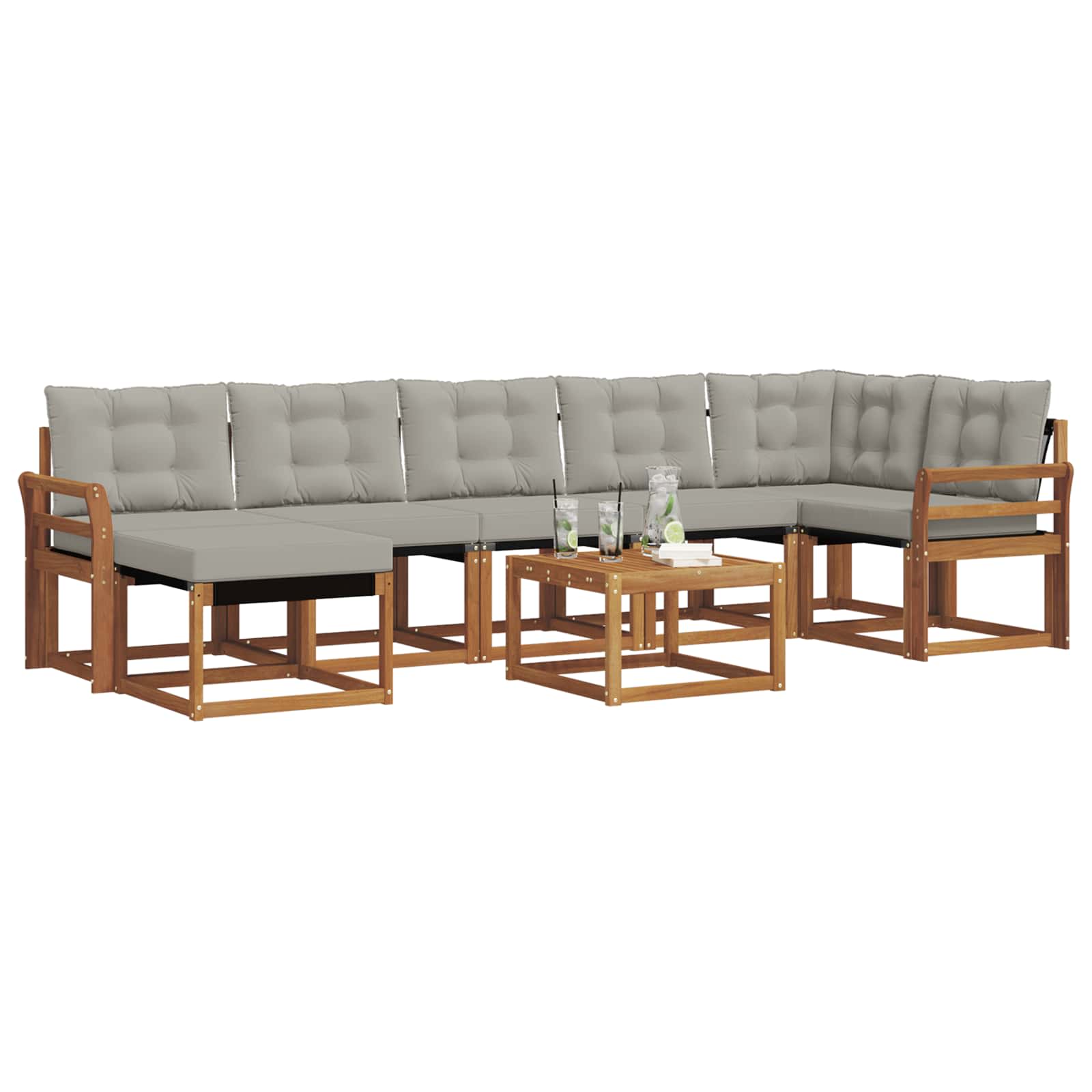 Questo set di divani moderni è un'aggiunta chic a qualsiasi spazio esterno, unendo stile e comfort. Con linee pulite e un look minimalista, è perfetto per giardini, patii o zone piscine. La mescolanza di legno massello di acacia e tessuto texilene lo rende una scelta versatile, creando un'atmosfera invitante per trascorrere del tempo con amici e familiari. Il caldo colore marrone si integra perfettamente con il paesaggio, aumentando il suo fascino. Che tu stia organizzando un barbecue estivo o godendoti una serata tranquilla sotto le stelle, questo set offre l'ambiente ideale per momenti indimenticabili.