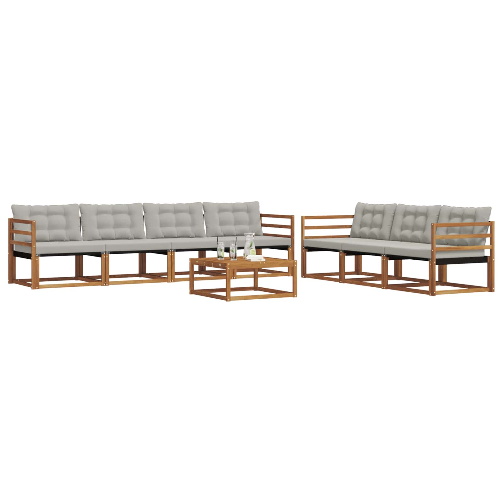 Il set di mobili da esterno combina stile e utilità, diventando il punto centrale di qualsiasi giardino o terrazza. Con il suo design moderno, linee semplici e dettagli minimali, porta eleganza e favorisce il relax all'aperto e le socialità. Realizzato in legno massello di acacia, è durevole e bello, perfetto per chi cerca praticità e design nei mobili esterni.