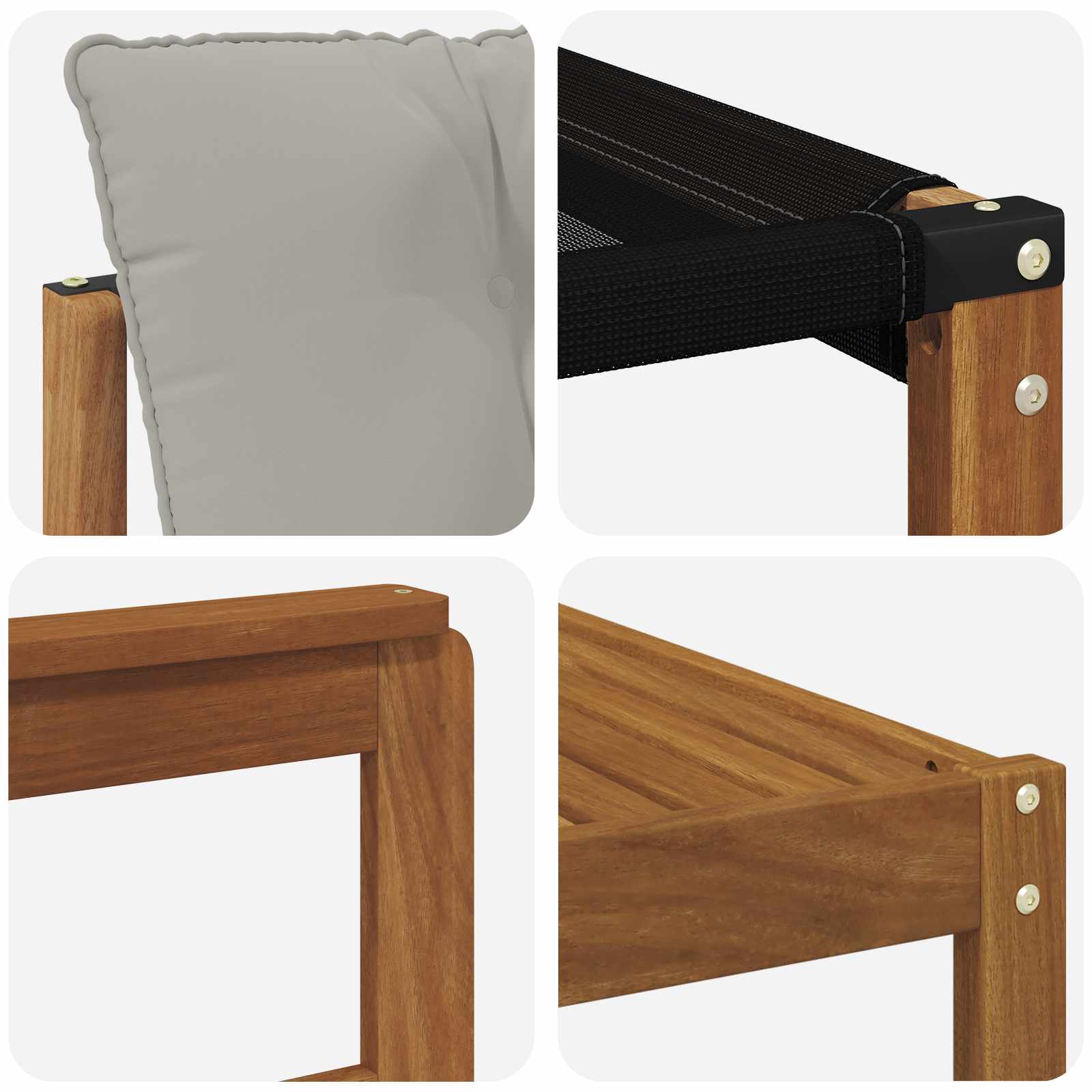 - Materiale: Legno di acacia massello e textilene