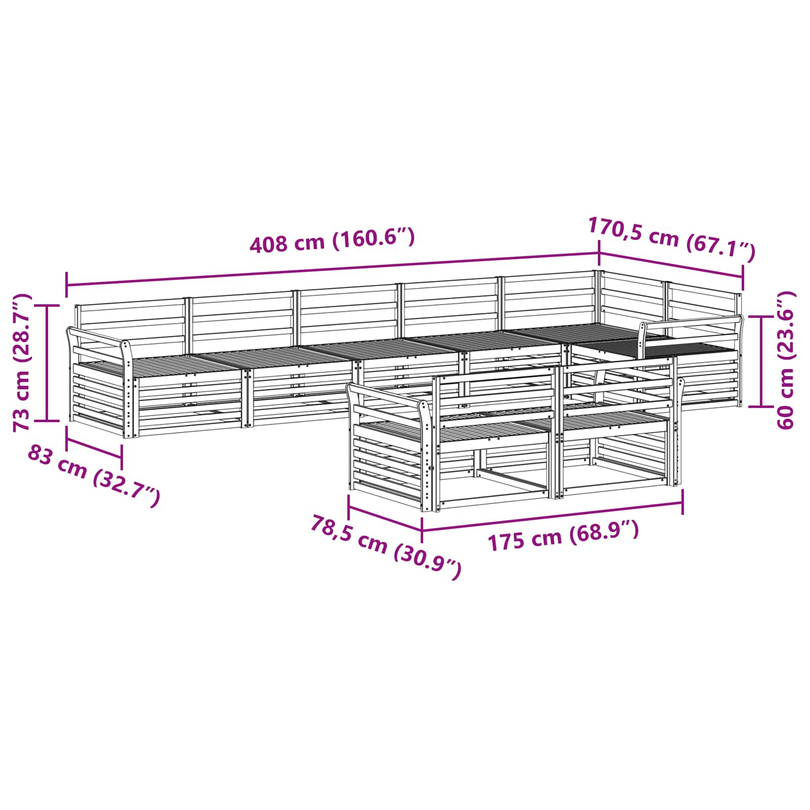 - Dimensioni complessive: 408 x 170,5 x 73 cm (L x P x A)