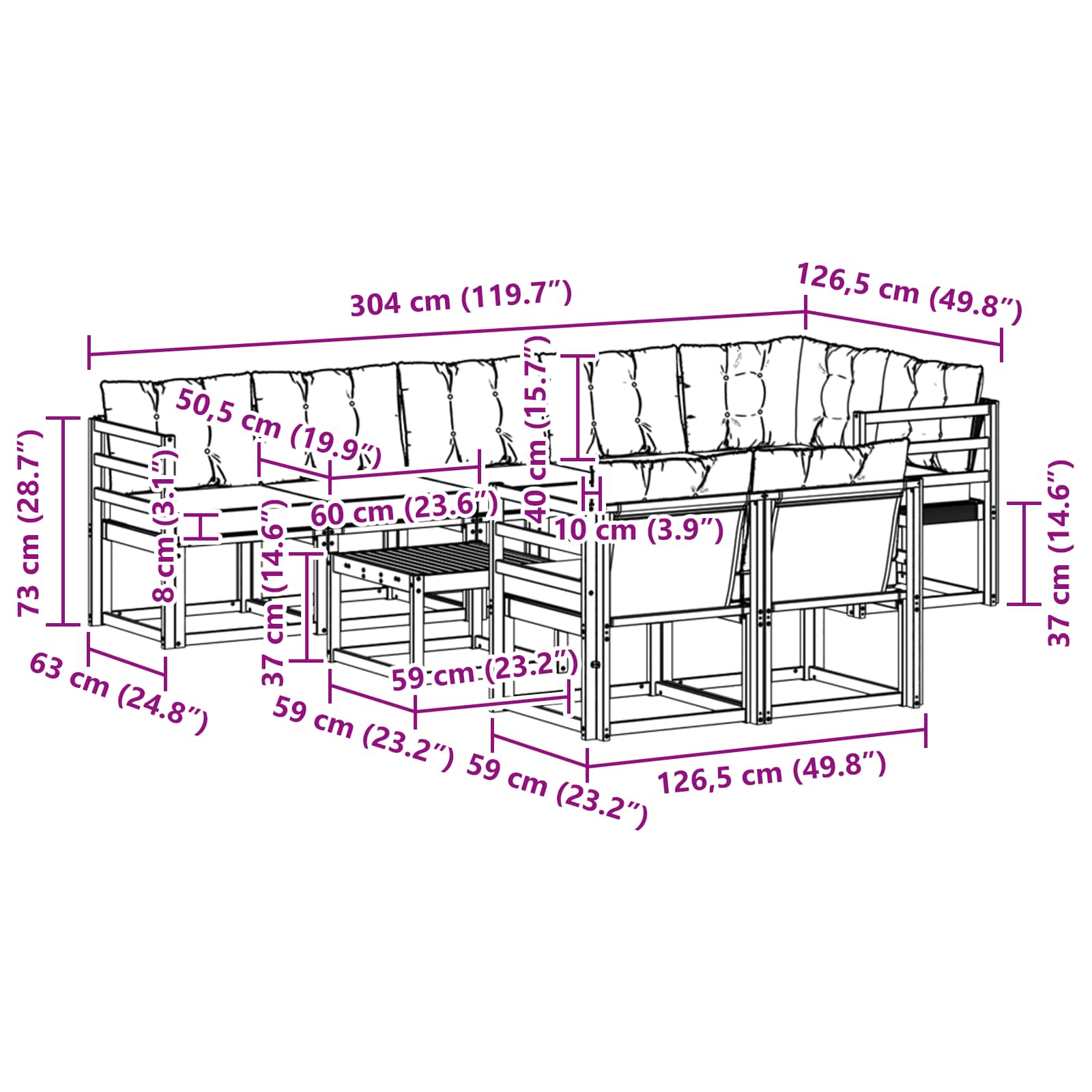 Set di divani da esterno 9 pcs Grigio Naturale e Chiaro 3368798