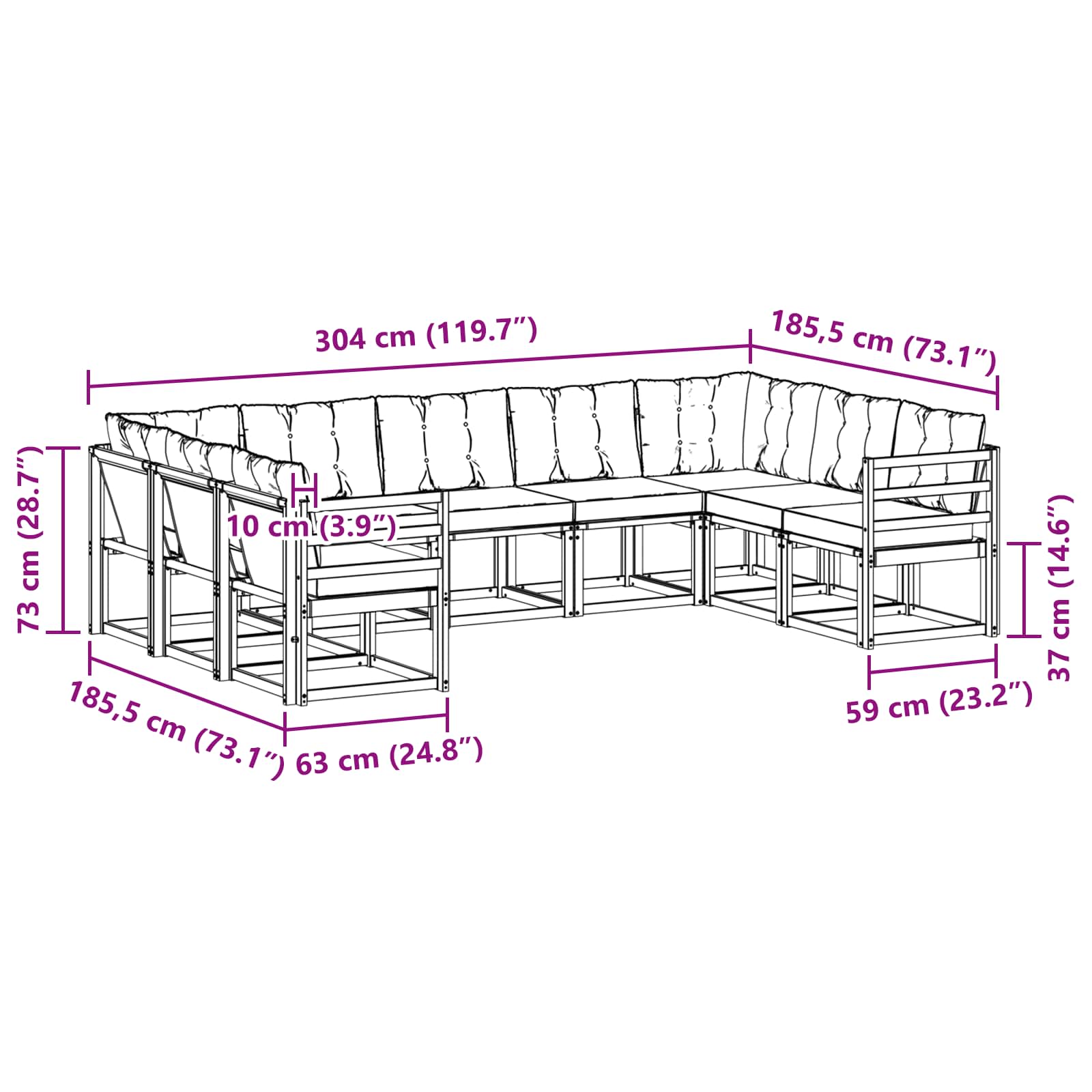 - Dimensioni complessive: 304 x 185,5 x 73 cm (L x P x A)