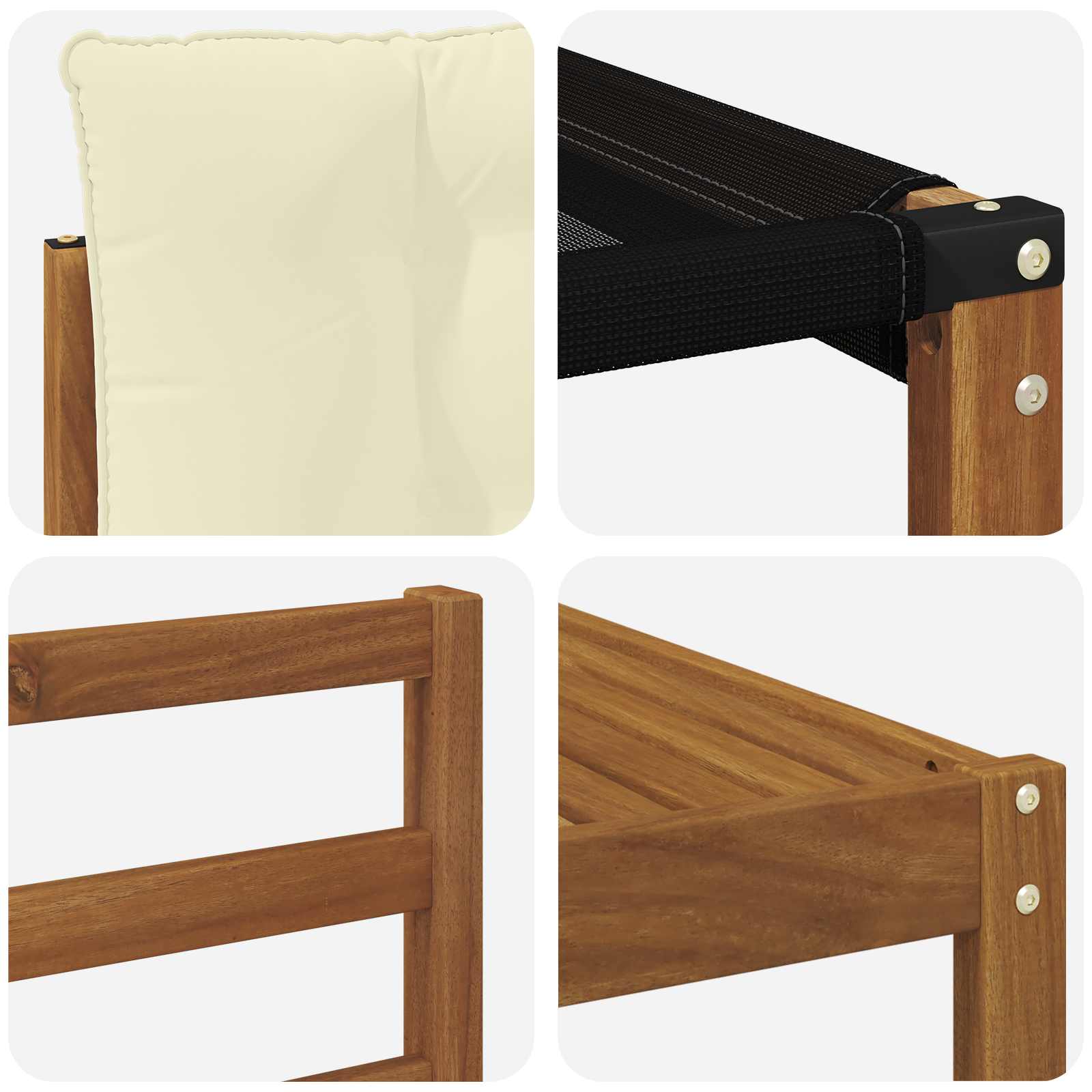 - Legno massello di acacia: Fatto in legno massello di acacia, il set ha una texture naturale ed è super resistente nel tempo. Il suo colorito ricco aggiunge un tocco di eleganza senza tempo, perfetto per affrontare le intemperie.