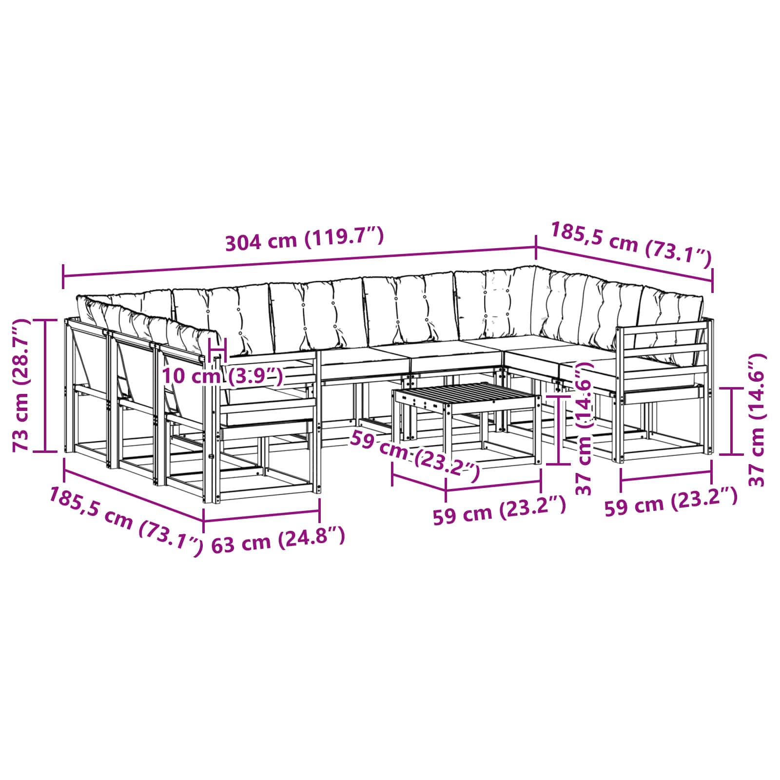 - 7 x Divano Medio: 59 x 63 x 73 cm (LxPxA)