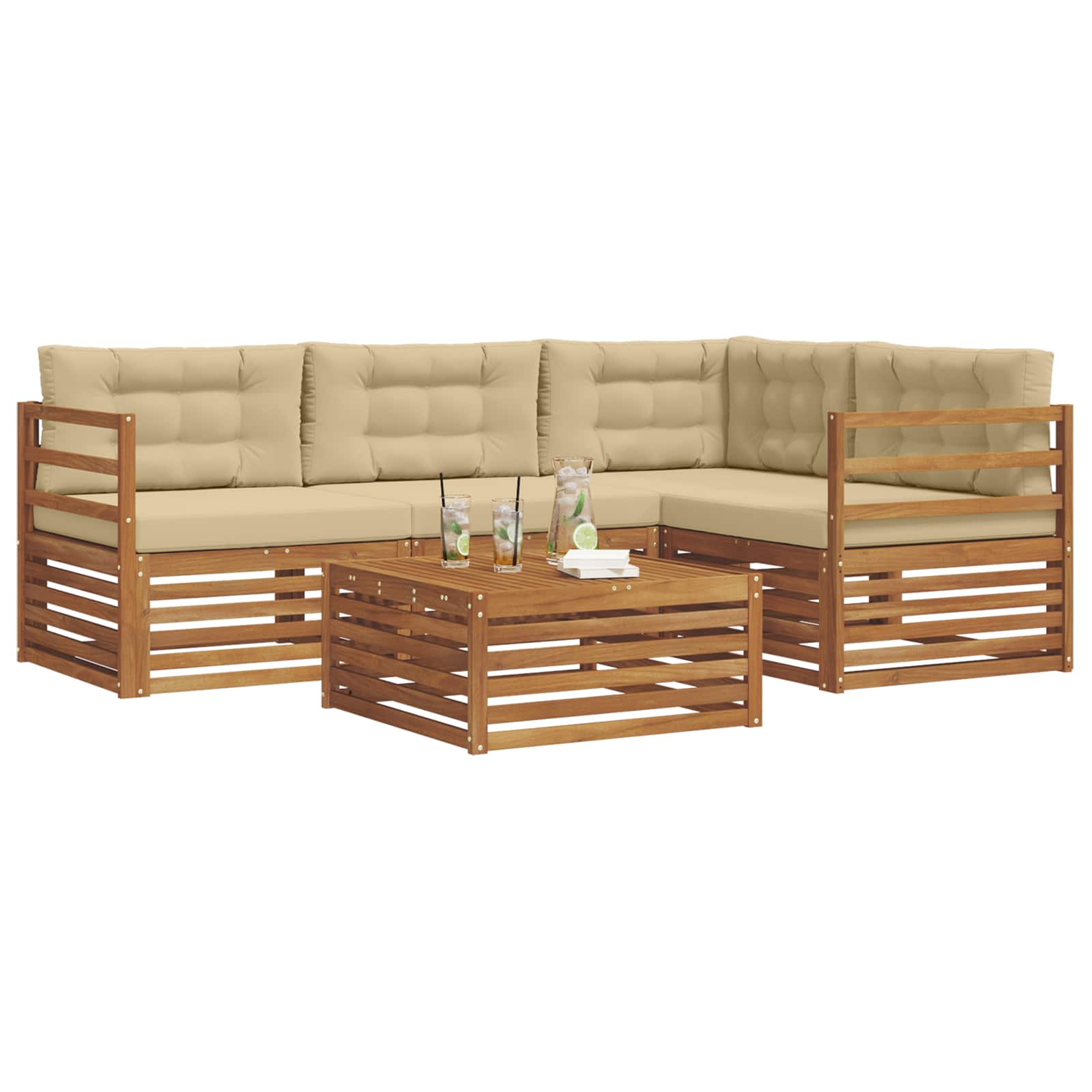 Set di divani da esterno con cuscino 5 pcs Naturale e Beige 3373403