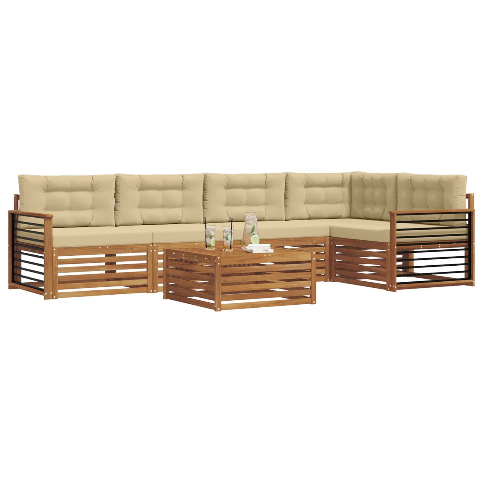 Il set di mobili da esterno combina stile e funzionalità, diventando il cuore di qualsiasi giardino o terrazza. Con il suo design moderno e le linee pulite, aggiunge un tocco di eleganza e rende più piacevoli i momenti di relax e le riunioni all'aperto. Realizzato in legno massello di acacia, questo set è resistente e alla moda, ideale per chi cerca praticità senza rinunciare all'eleganza.