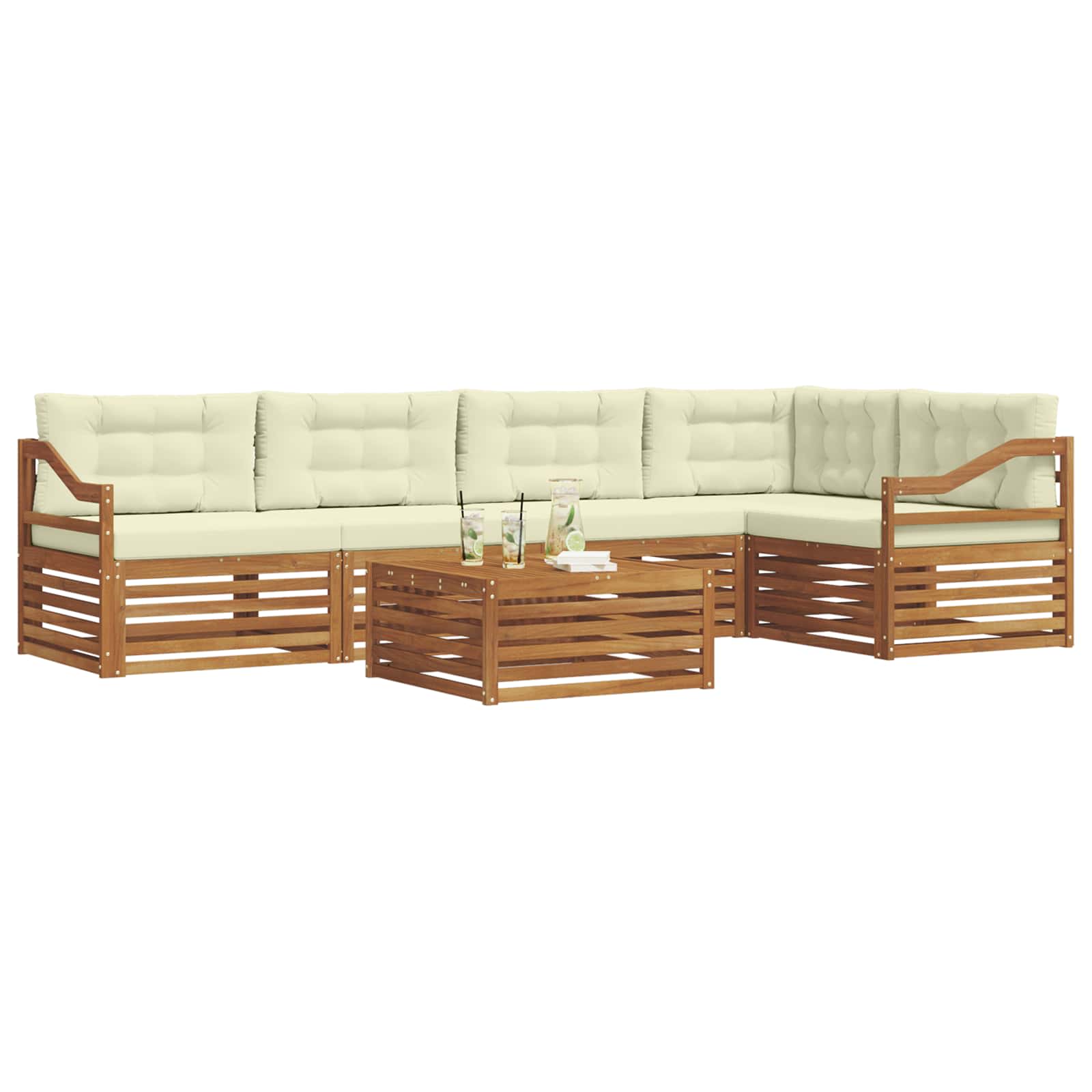 Il set di mobili da esterno combina stile e funzionalità, diventando il cuore di qualsiasi giardino o terrazza. Con il suo design moderno e le linee pulite, aggiunge un tocco di eleganza e rende più piacevoli i momenti di relax e le riunioni all'aperto. Realizzato in legno massello di acacia, questo set è resistente e alla moda, ideale per chi cerca praticità senza rinunciare all'eleganza.