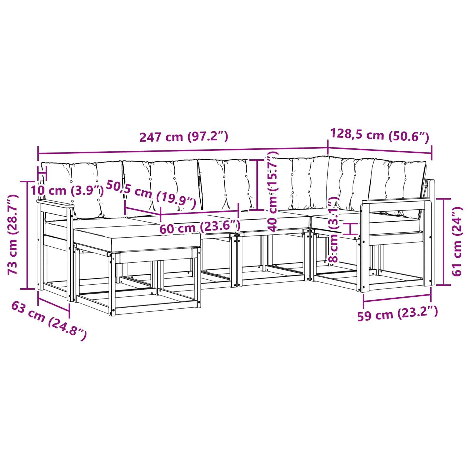 Set di divani da esterno con cuscino 6 pcs Naturale e Nero 3368827