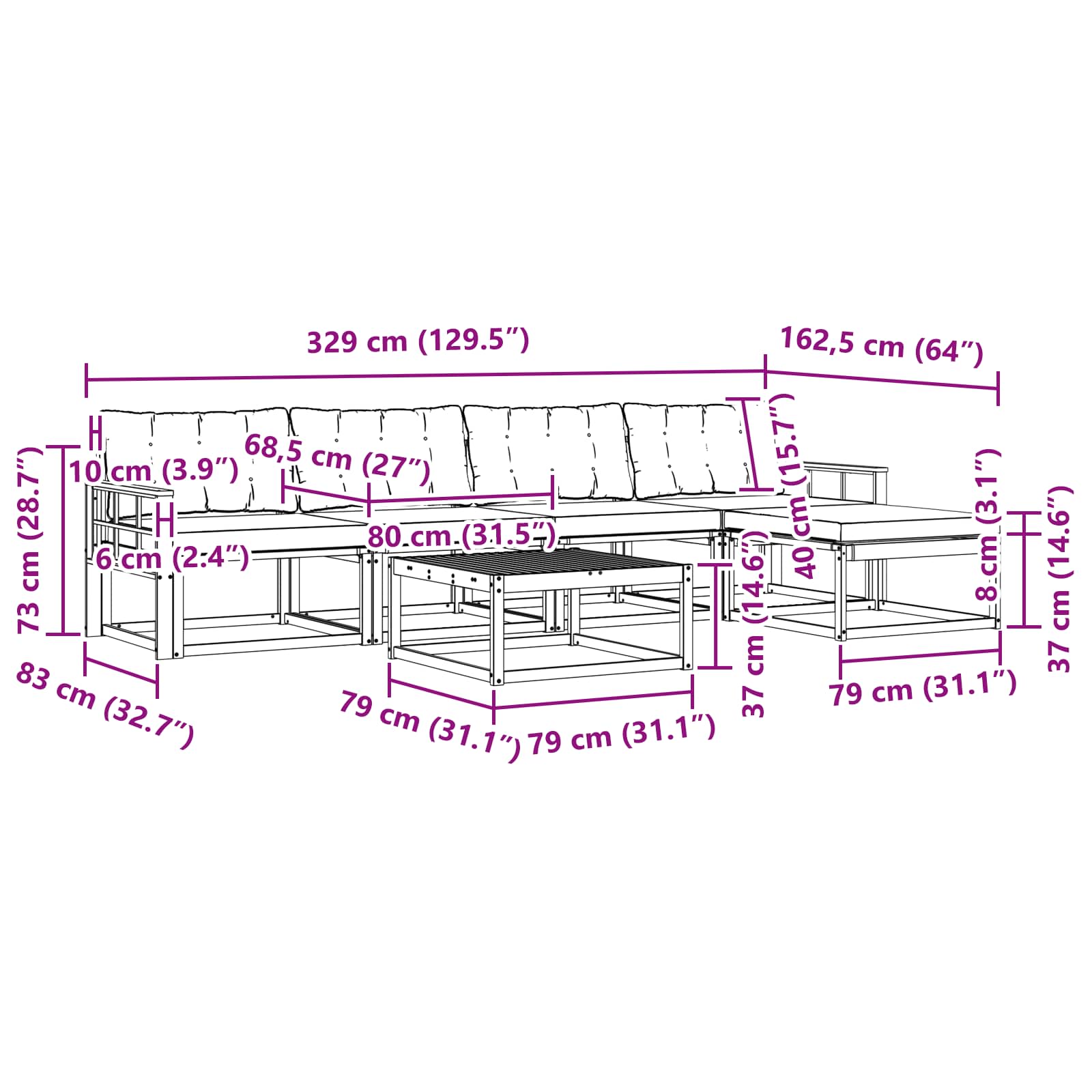 Set di divani da esterno con cuscino 6 pcs Naturale e Nero 3369391