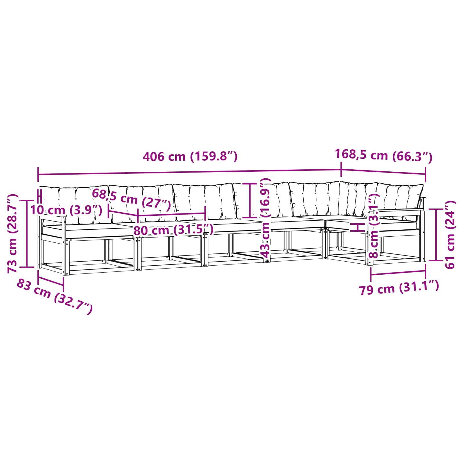 Set di divani da esterno con cuscino 6 pcs Naturale e Nero 3369499
