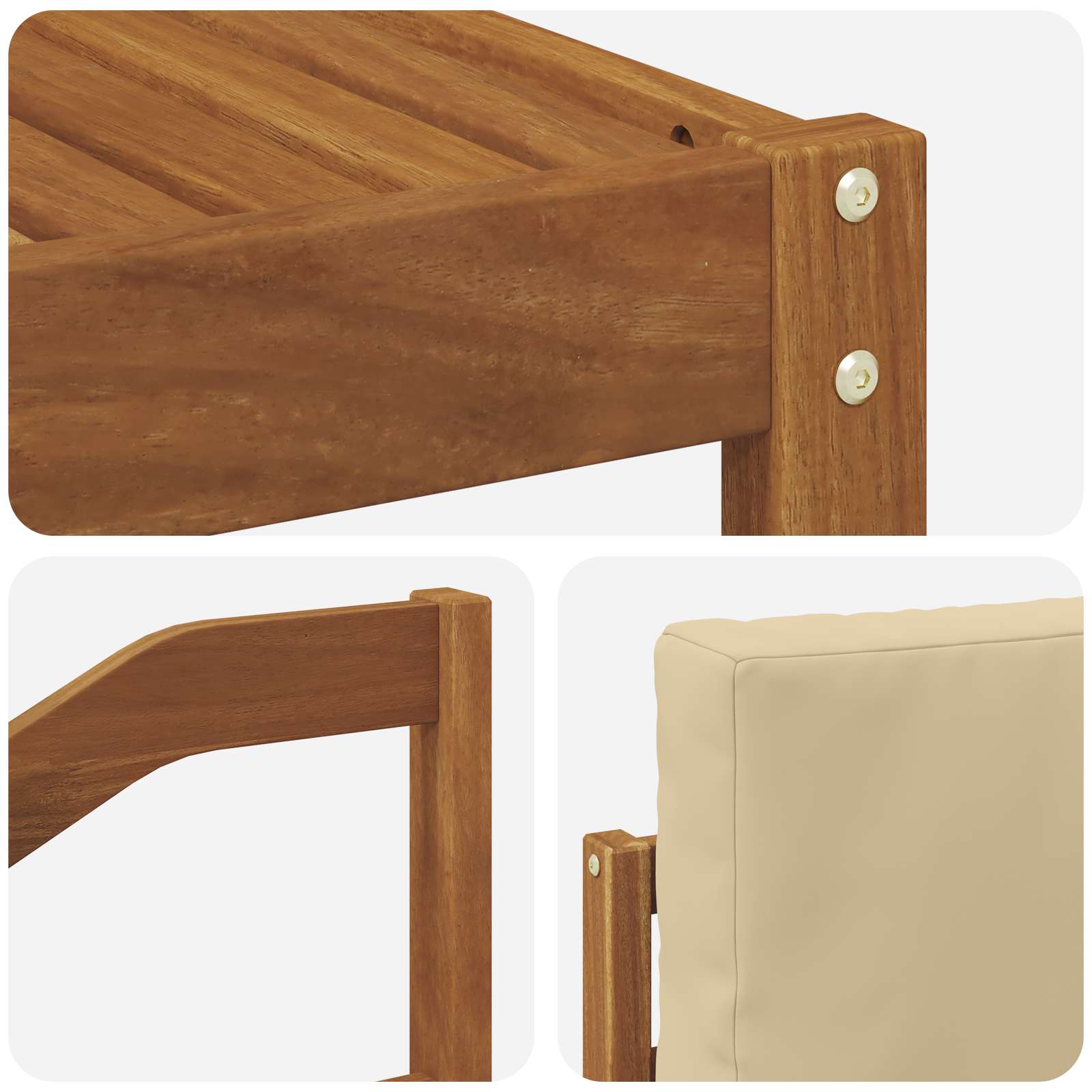 - Materiale: Legno di acacia massello e poliestere