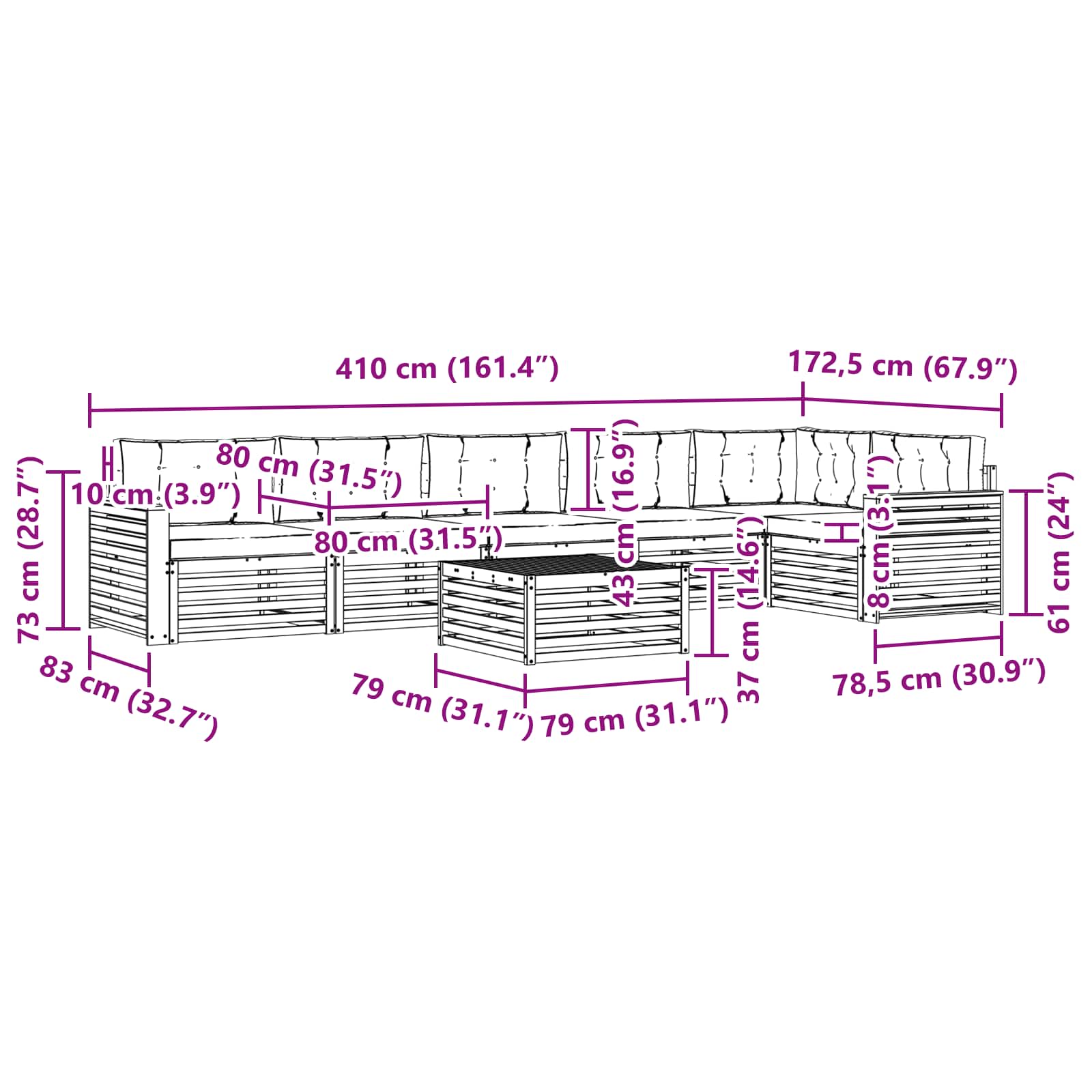 - 7 x Cuscino per Schienale: 80 x 43 x 10 cm (LxWxH)