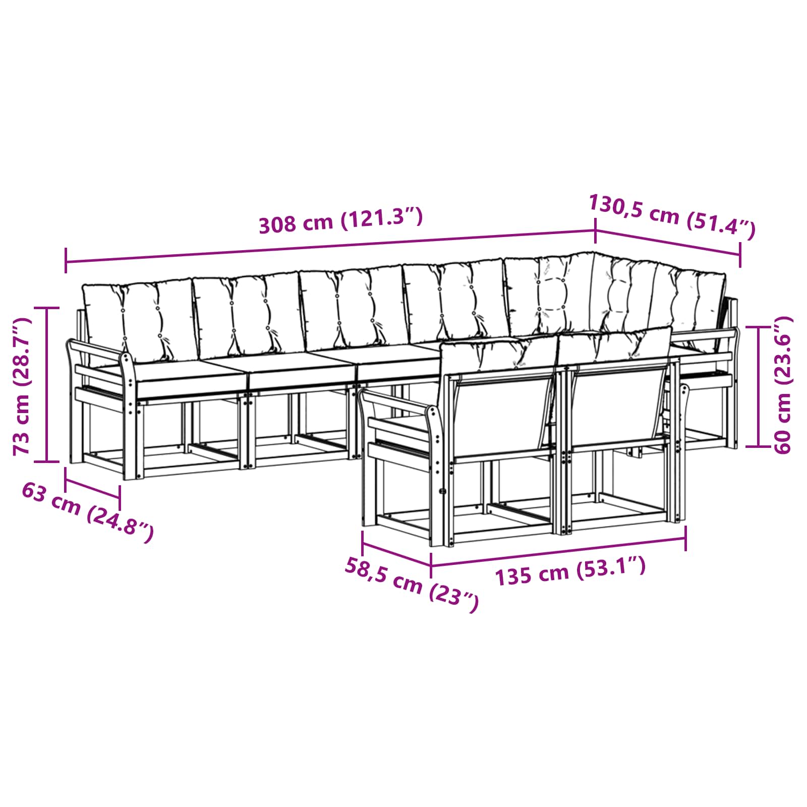 - 7 x Cuscino per seduta: 60 x 50,5 x 8 cm (LxWxH)